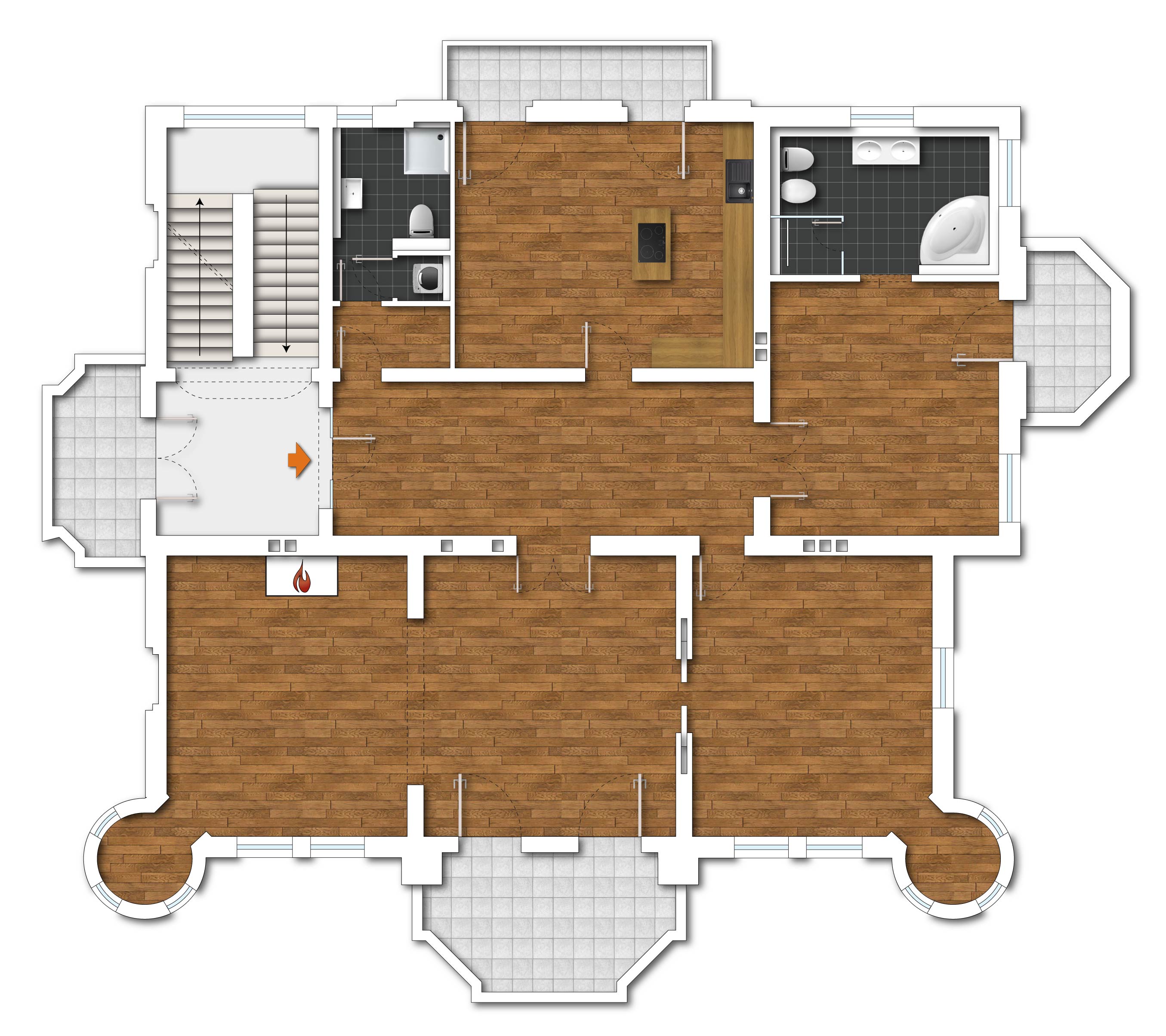 Der Schnitt mit einem großzügigen Wohn-Essbereich mit offenem Kamin und schönem Südbalkon sowie zwei Schlafzimmern und zwei Bädern ist ideal für ein Paar oder eine Familie mit einem Kind.