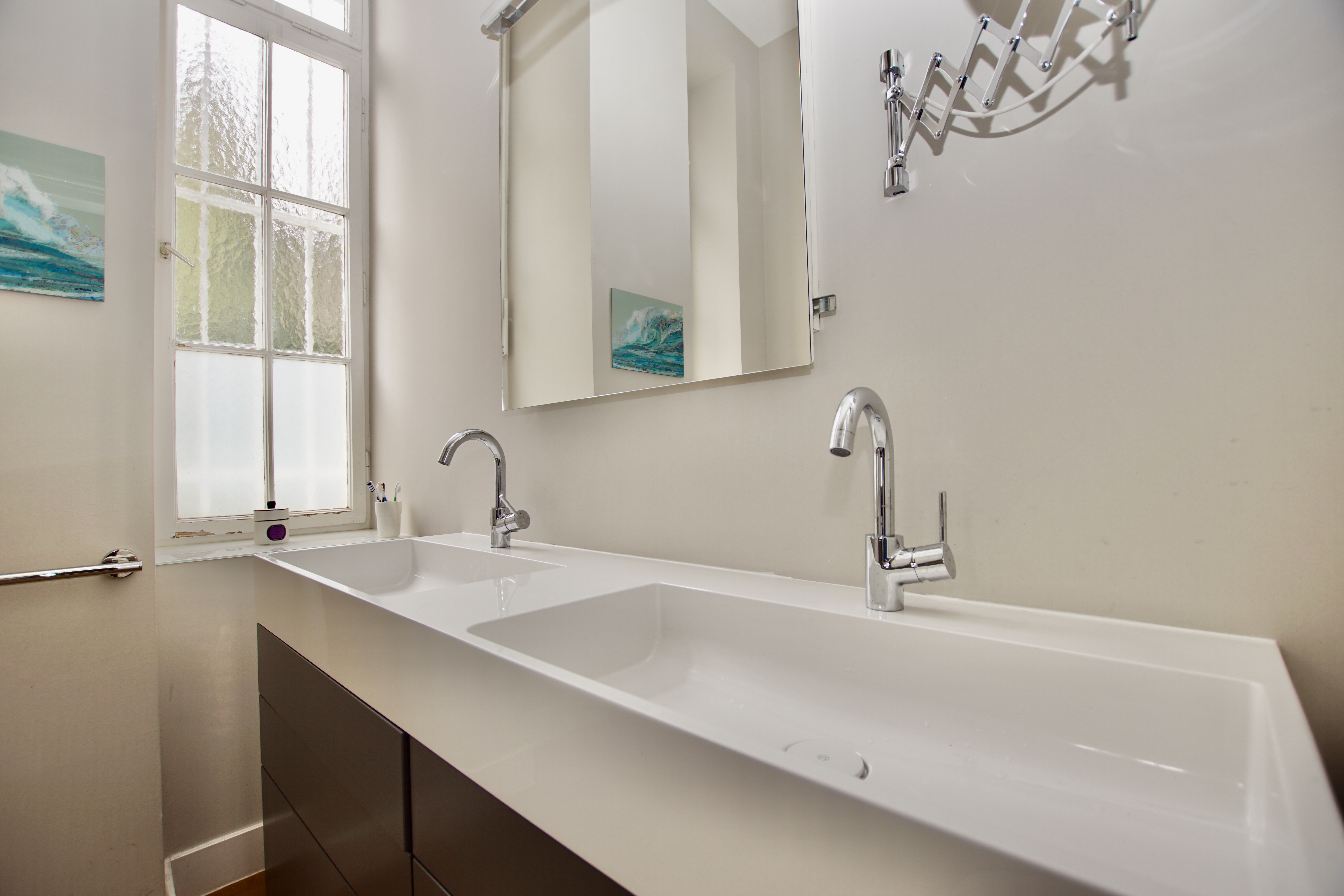 Die Wohnung kann jederzeit in zwei Wohneinheiten aufgeteilt werden, da sie laut Teilungserklärung aus zwei Wohneinheiten besteht. Auch eine kombinierte Nutzung von privatem Wohnen und Gewerbe ist möglich.