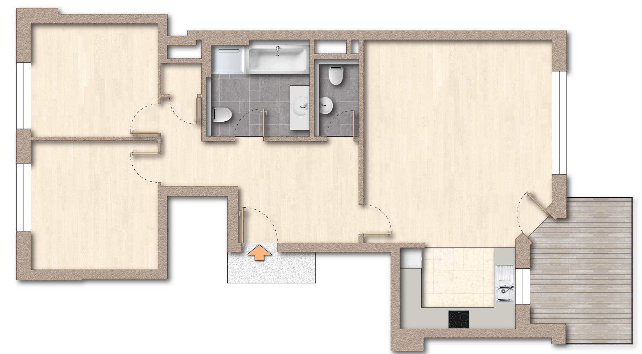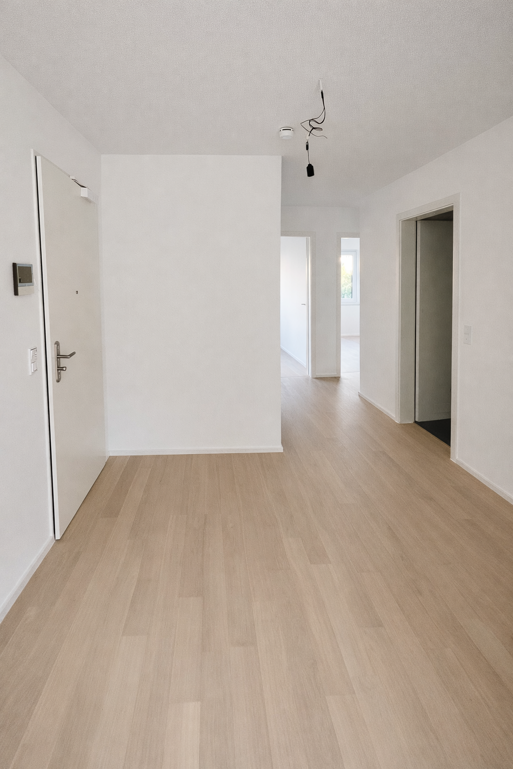 Diese helle und hochwertige Neubau-Wohnung liegt im Erdgeschoss eines Mehrparteienhauses seitlich der Dotzheimer Straße. Der Schnitt eignet sich ideal für Singles, Paare und Familien mit einem Kind oder ältere Bewohner, denen die Barrierefreiheit wichtig ist.