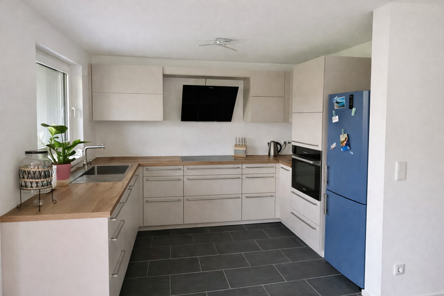Der Tiefgaragenplatz mit Sicherheitsrollo und e-Ladestation sowie die hochwertige Leicht-Einbauküche mit Miele-Geräten sind im Preis inkludiert.