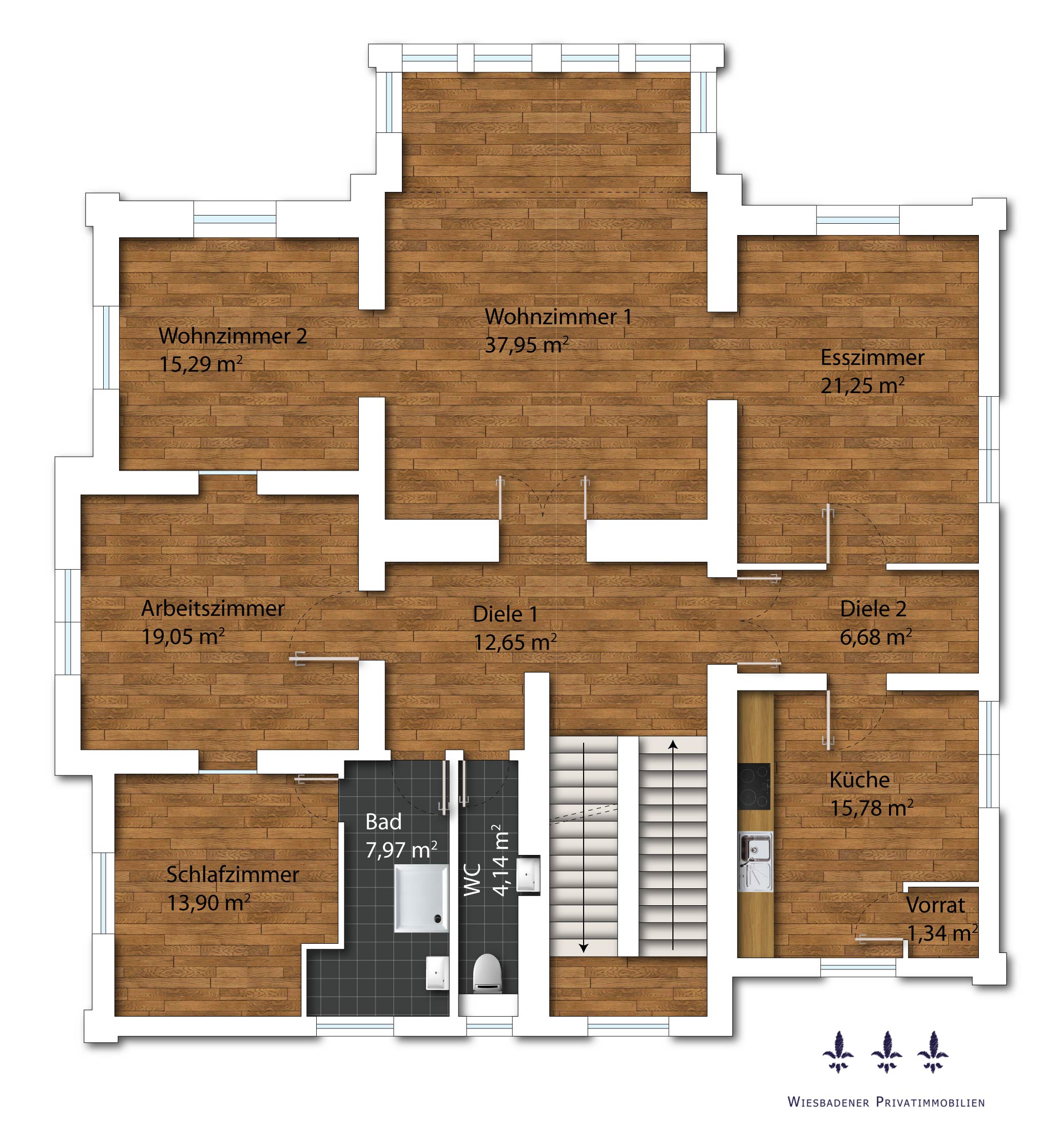 Die zurzeit in vier Wohneinheiten aufgeteilte Villa bietet eine Vielzahl von Nutzungsmöglichkeiten zum Leben und Arbeiten. Zwei der vier Etagen wurden in den Jahren 2005 und 2010 kernsaniert. Das Dach ist mit Naturschiefer gedeckt.