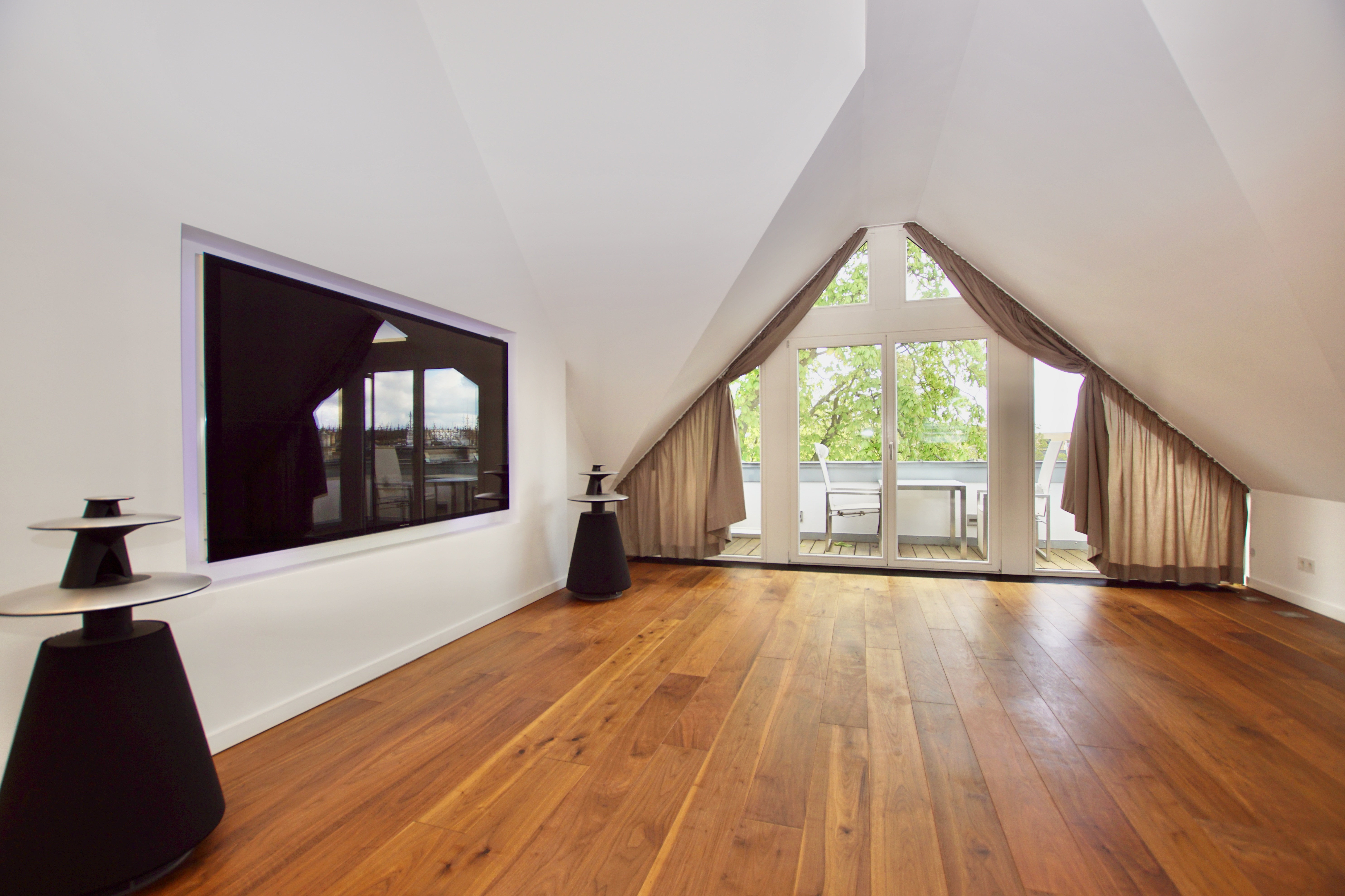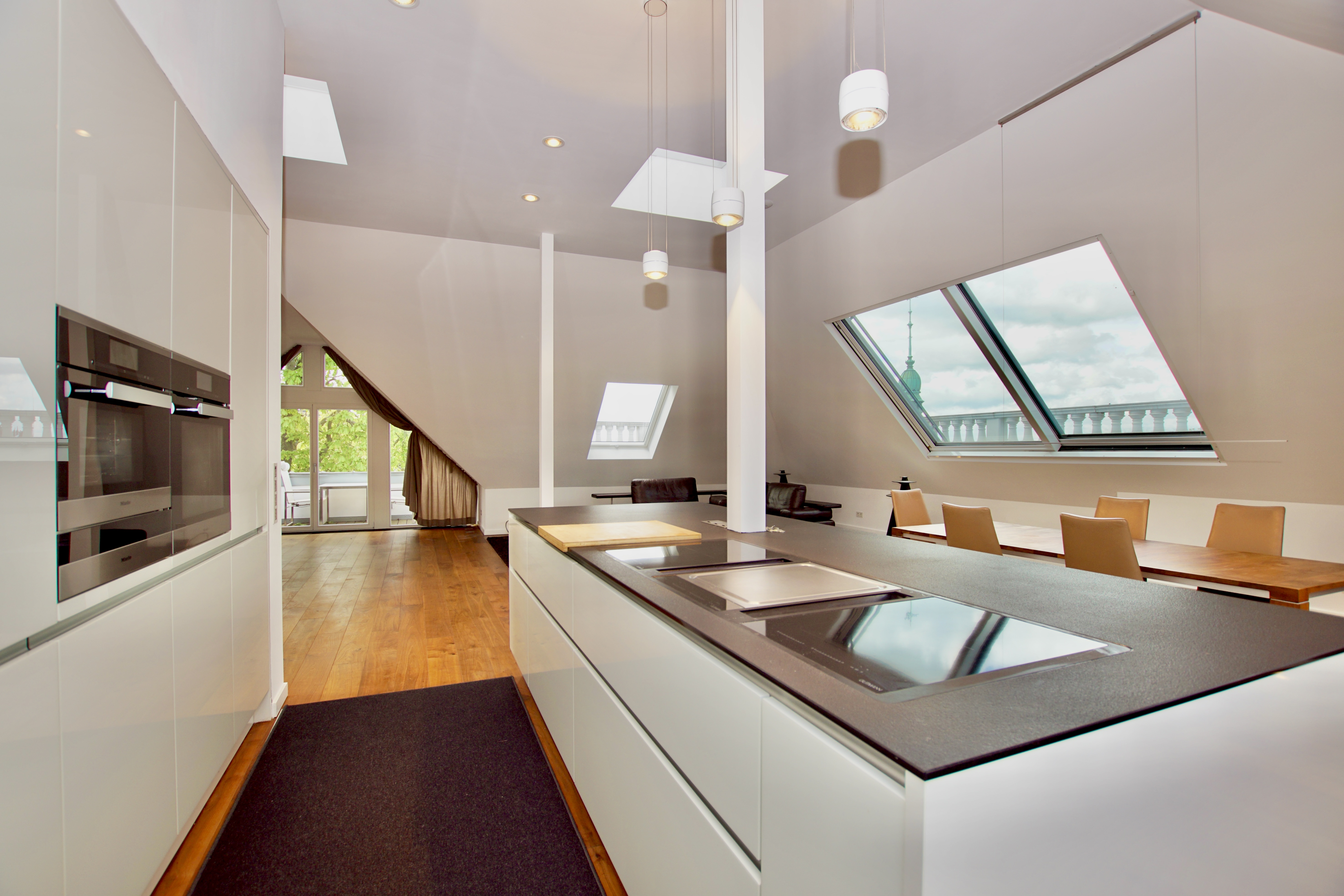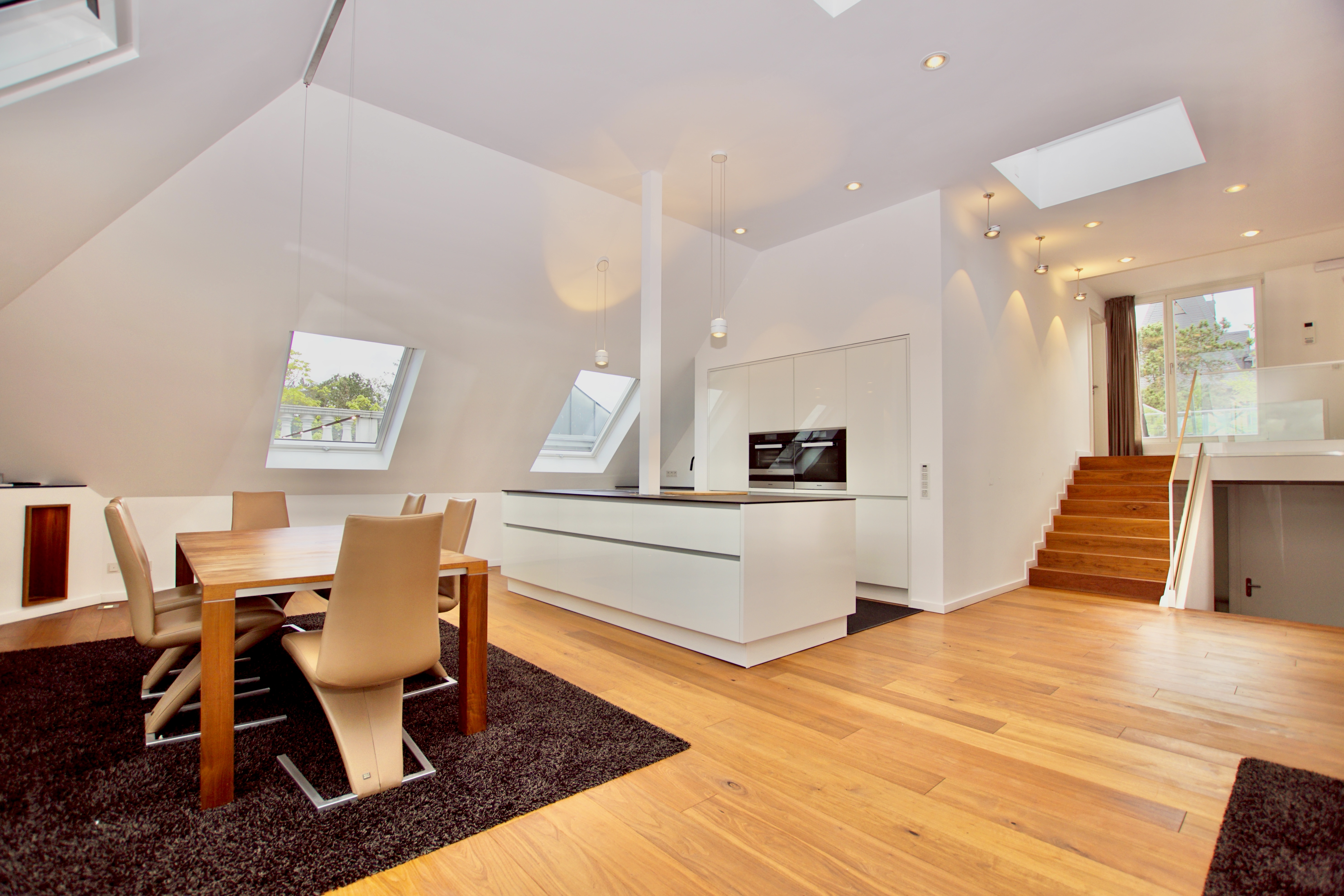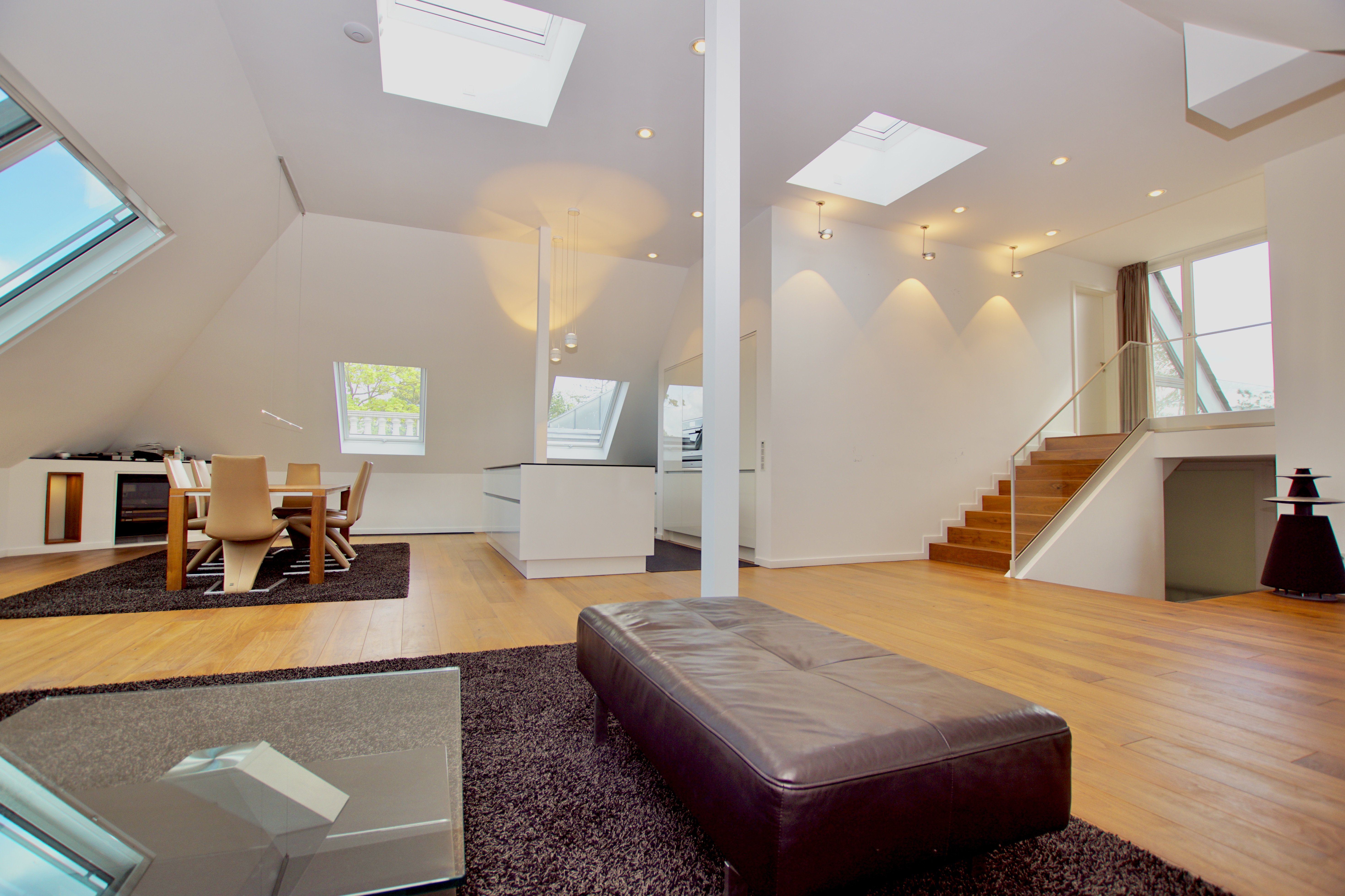 Die Wohnung wurde vor 10 Jahren kernsaniert und weist einen luxuriösen Standard auf. Dank der verschiedenen Ebenen unterteilt sie sich in einen Schlaf-, einen Wohn-, Ess- und Küchenbereich sowie einen Kinder-, Gästetrack auf. Die Ausstattung mit diversen Einbauten, Leuchten und Extras ist außergewöhnlich geschmackvoll und hochwertig.