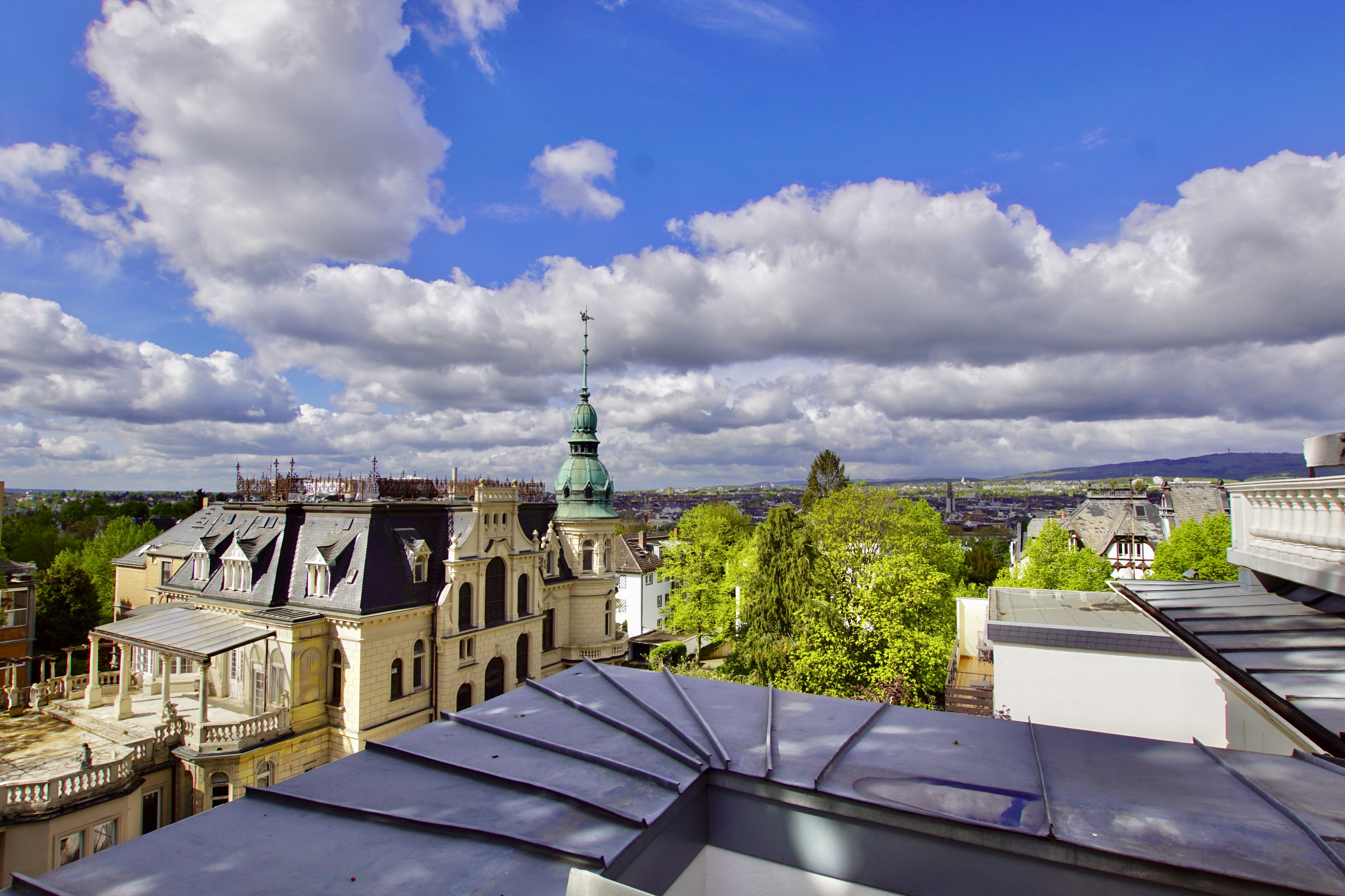 Dank der Halbhöhenlage genießen Sie einen fantastischen Blick über die Dächer der Stadt Wiesbaden.