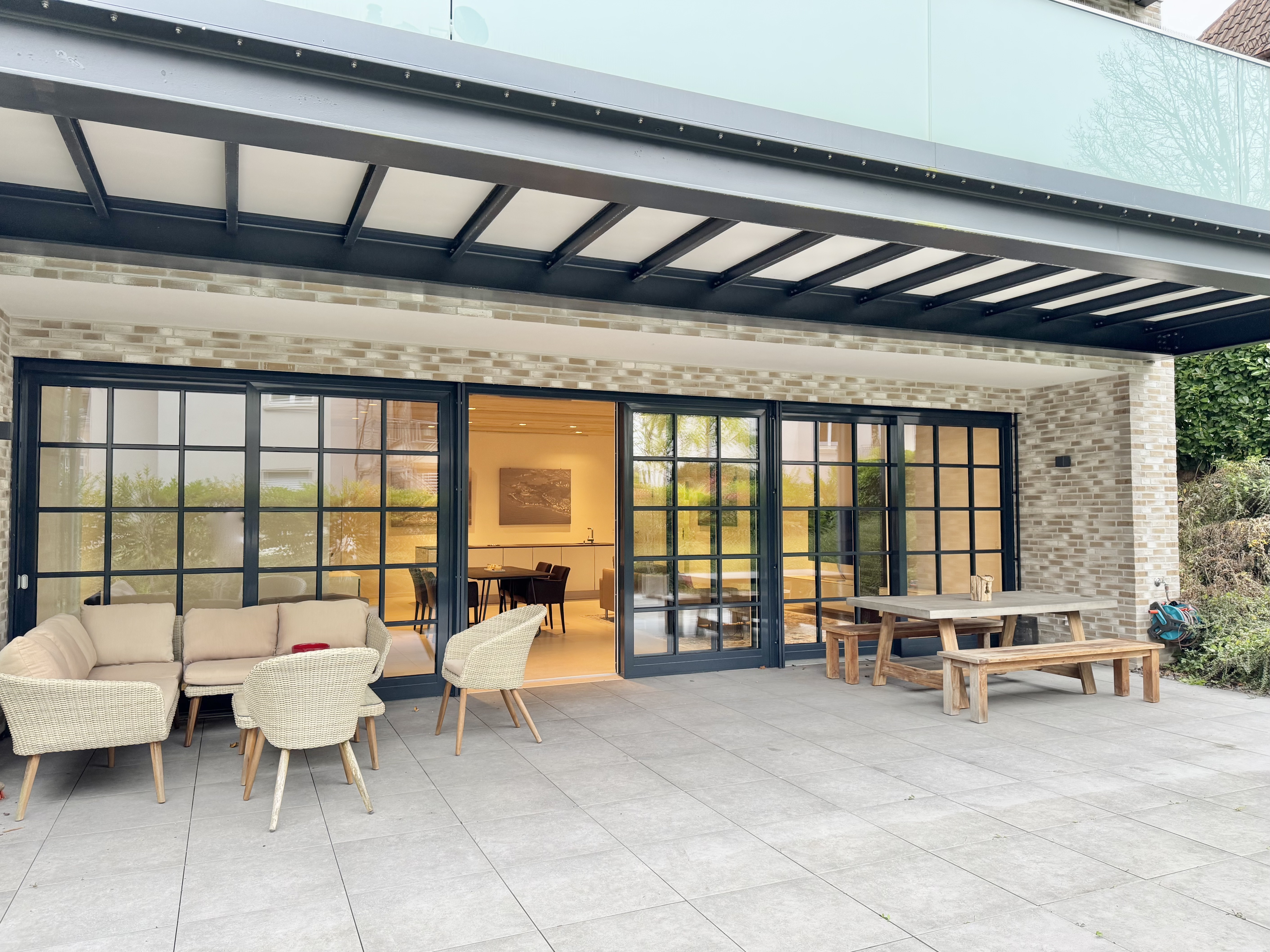Die Wohnung besteht aus einem großzügigen Wohnbereich mit bodentiefen Glaselementen zur Terrasse, offener Küche sowie einer Scullery, einem Schlafzimmer und einem Bad.