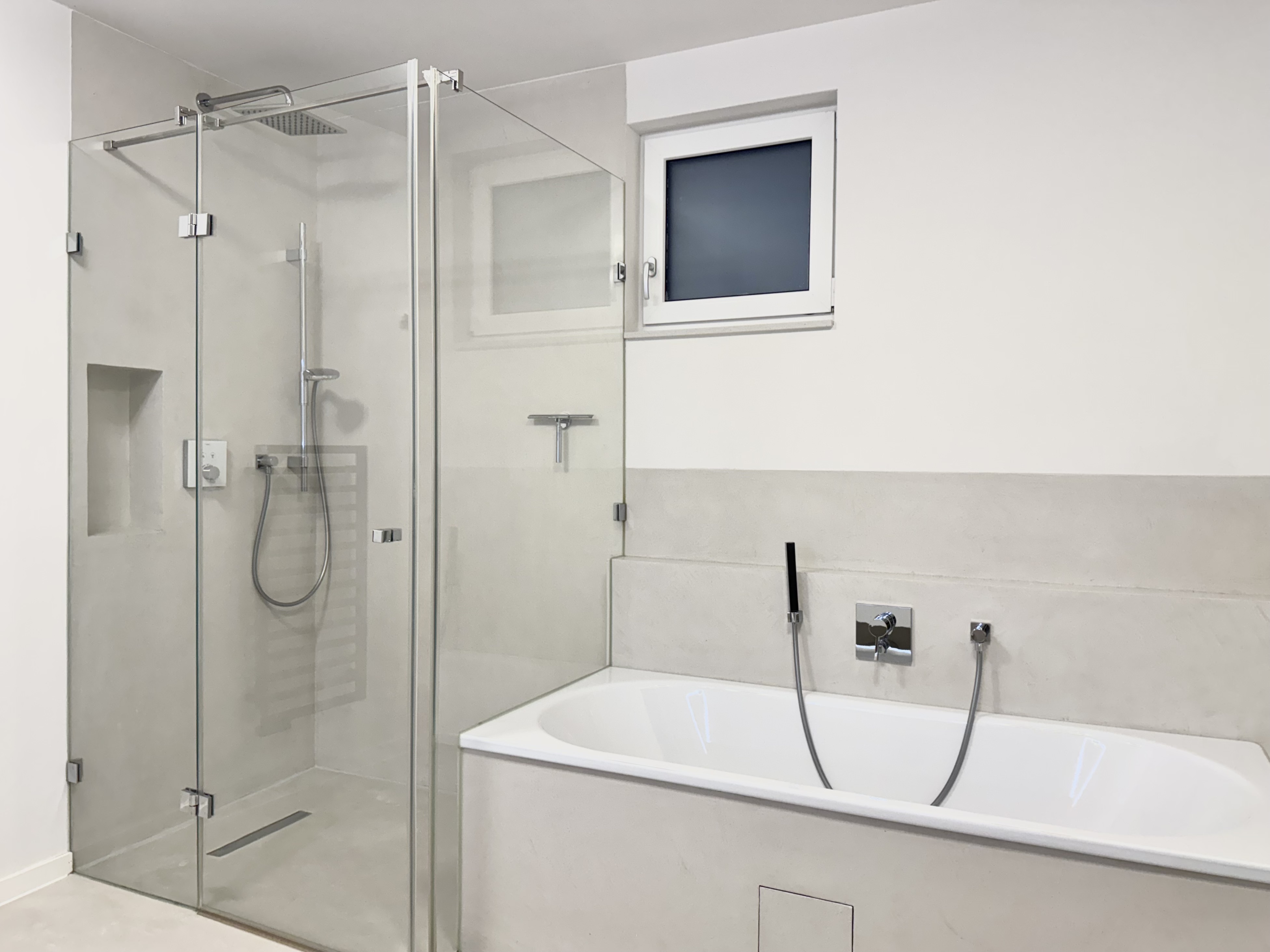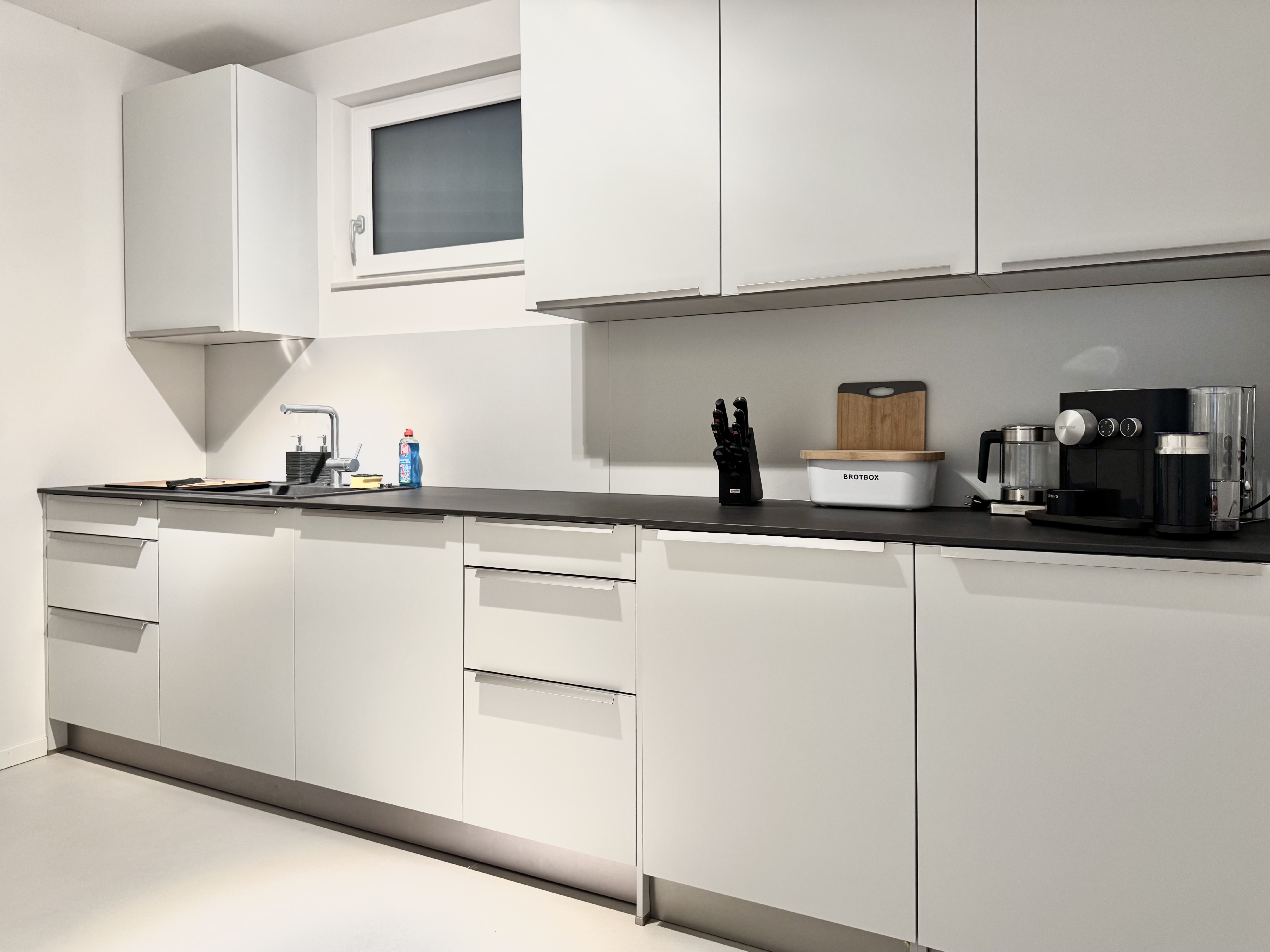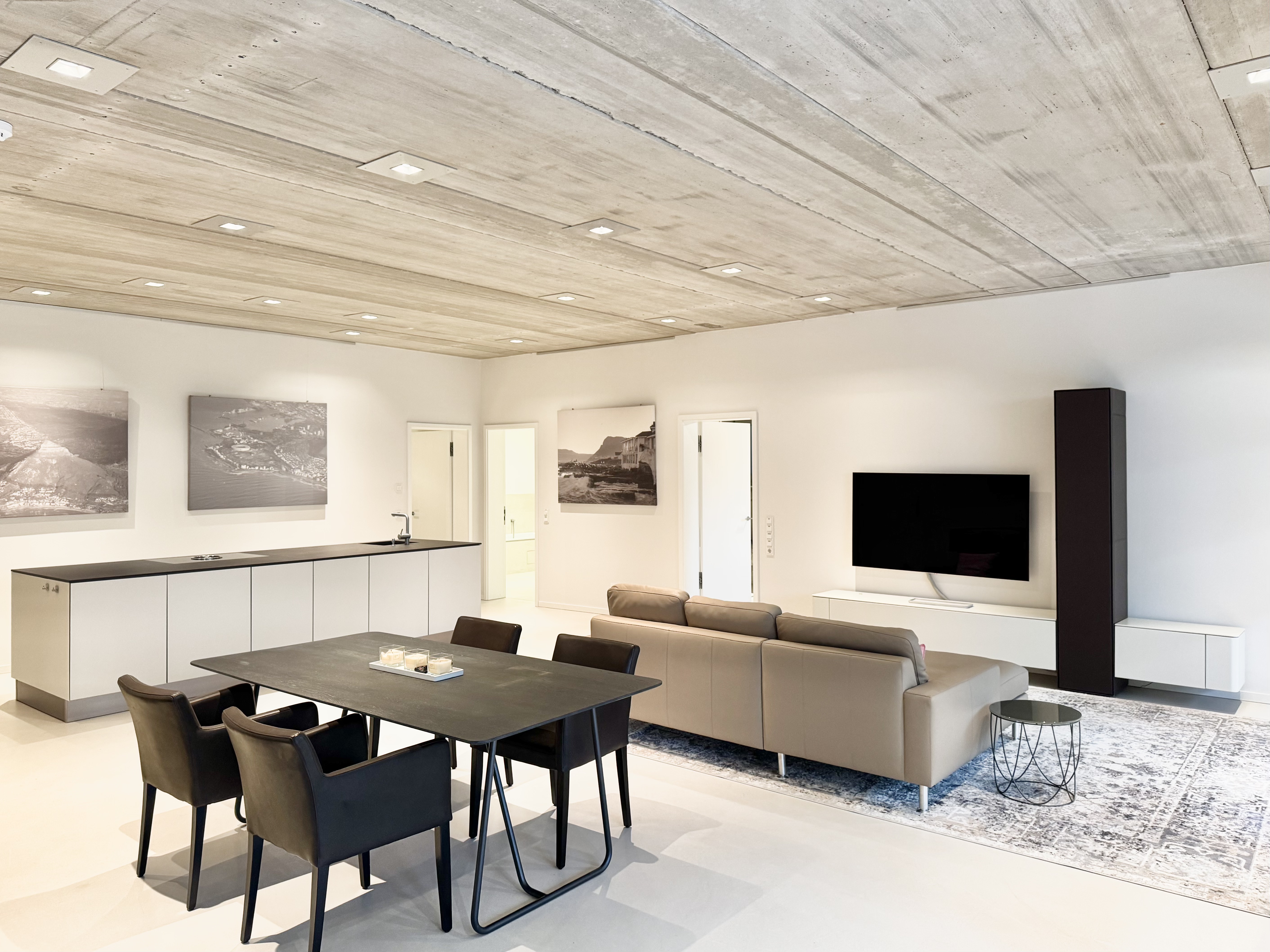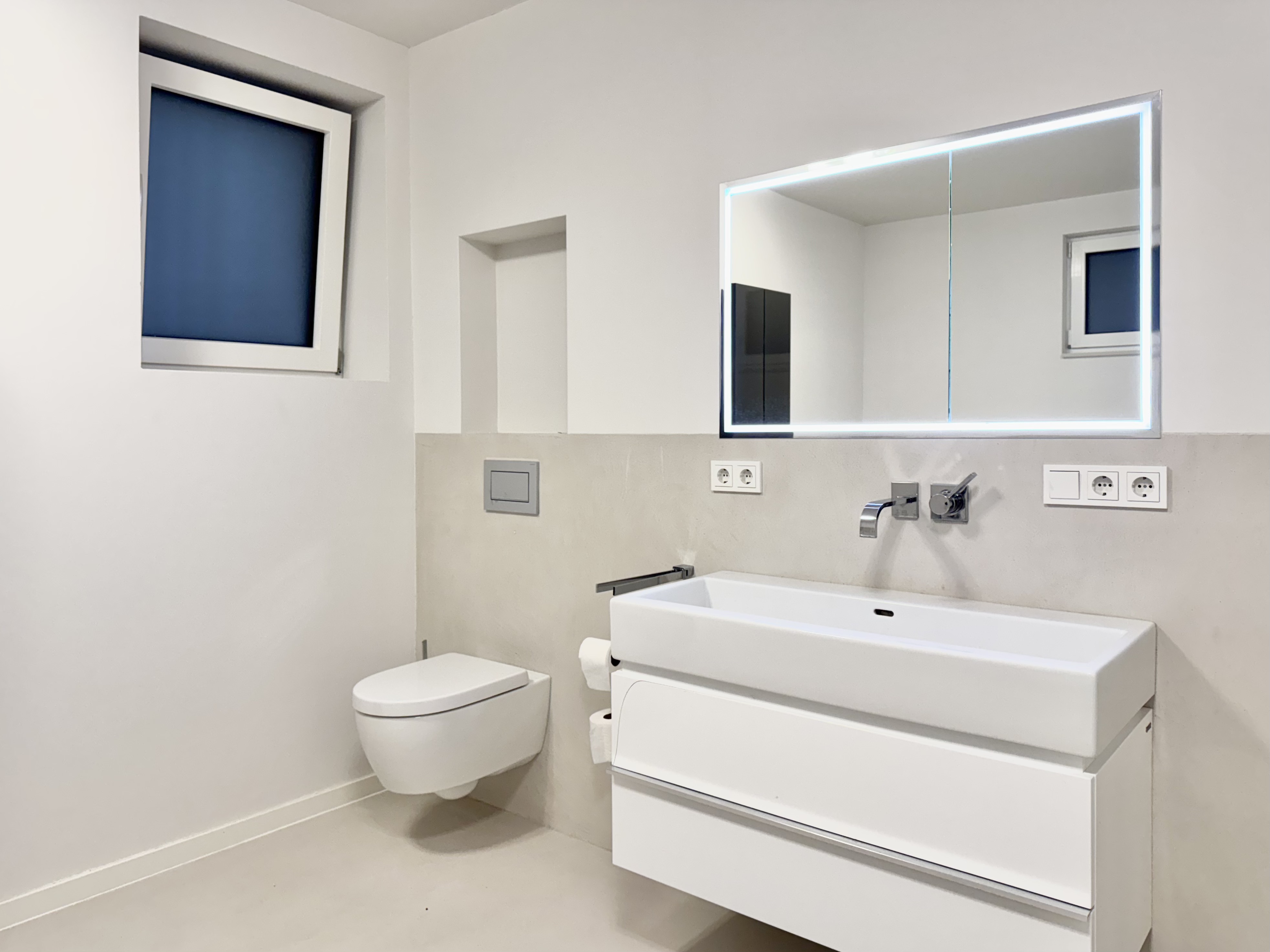 Die Ausstattung ist extrem hochwertig und architektonisch anspruchsvoll. Die Ausstattung lässt keine Wünsche offen - Kamin - Einbauleuchten - Einbauschränke - hohe Decken in Betonoptik - automatische Jalousien - Fußbodenheizung etc..