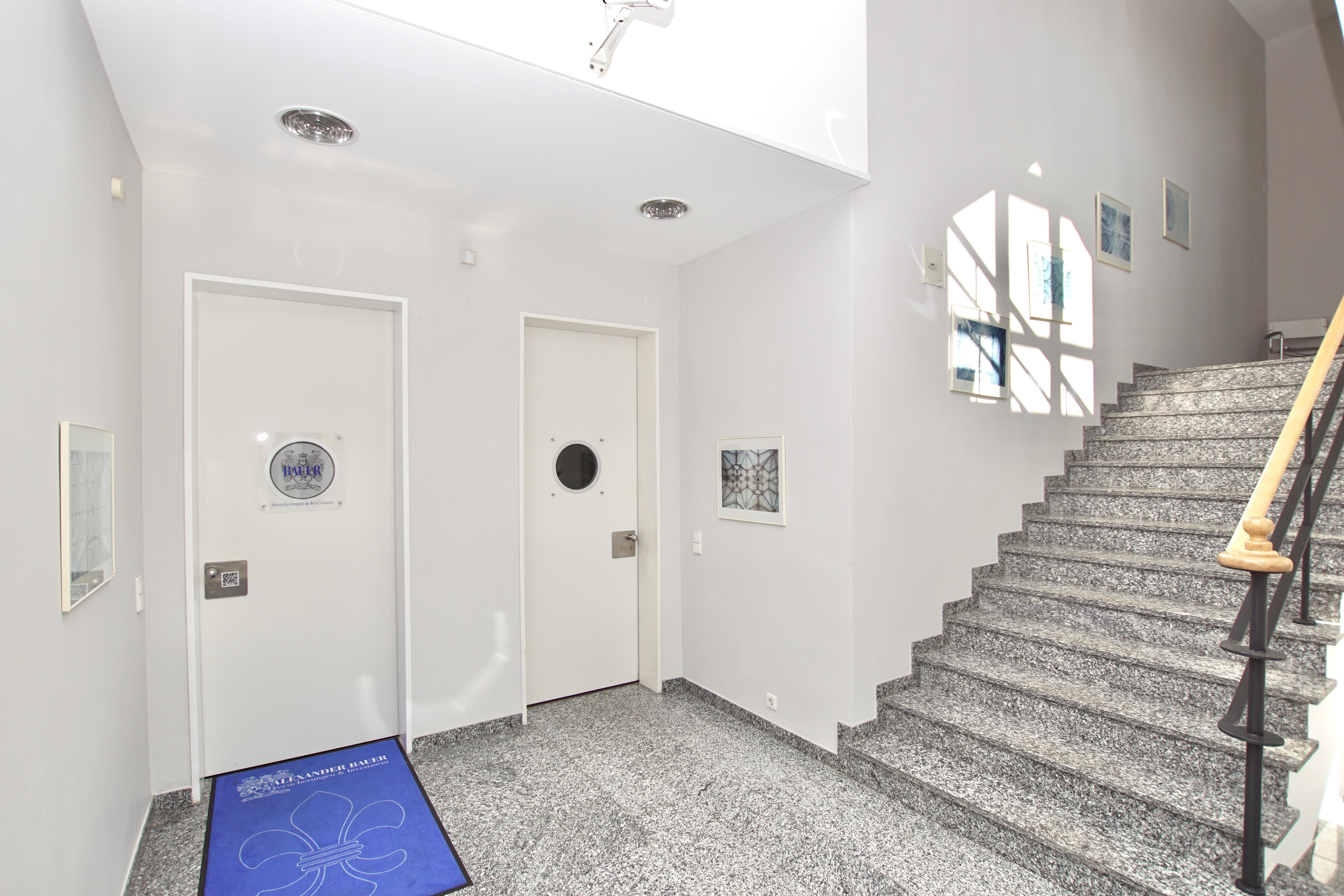 Zusätzlich verfügt die Immobilie über eine moderne Küche und ein zeitgemäßes Badezimmer. Die zentrale Lage ermöglicht eine gute Erreichbarkeit für Mitarbeiter und Kunden. Dank der umfangreichen Renovierung präsentiert sich die Bürofläche in einem erstklassigen Zustand und bietet eine einzigartige Kombination aus Historie und Modernität.