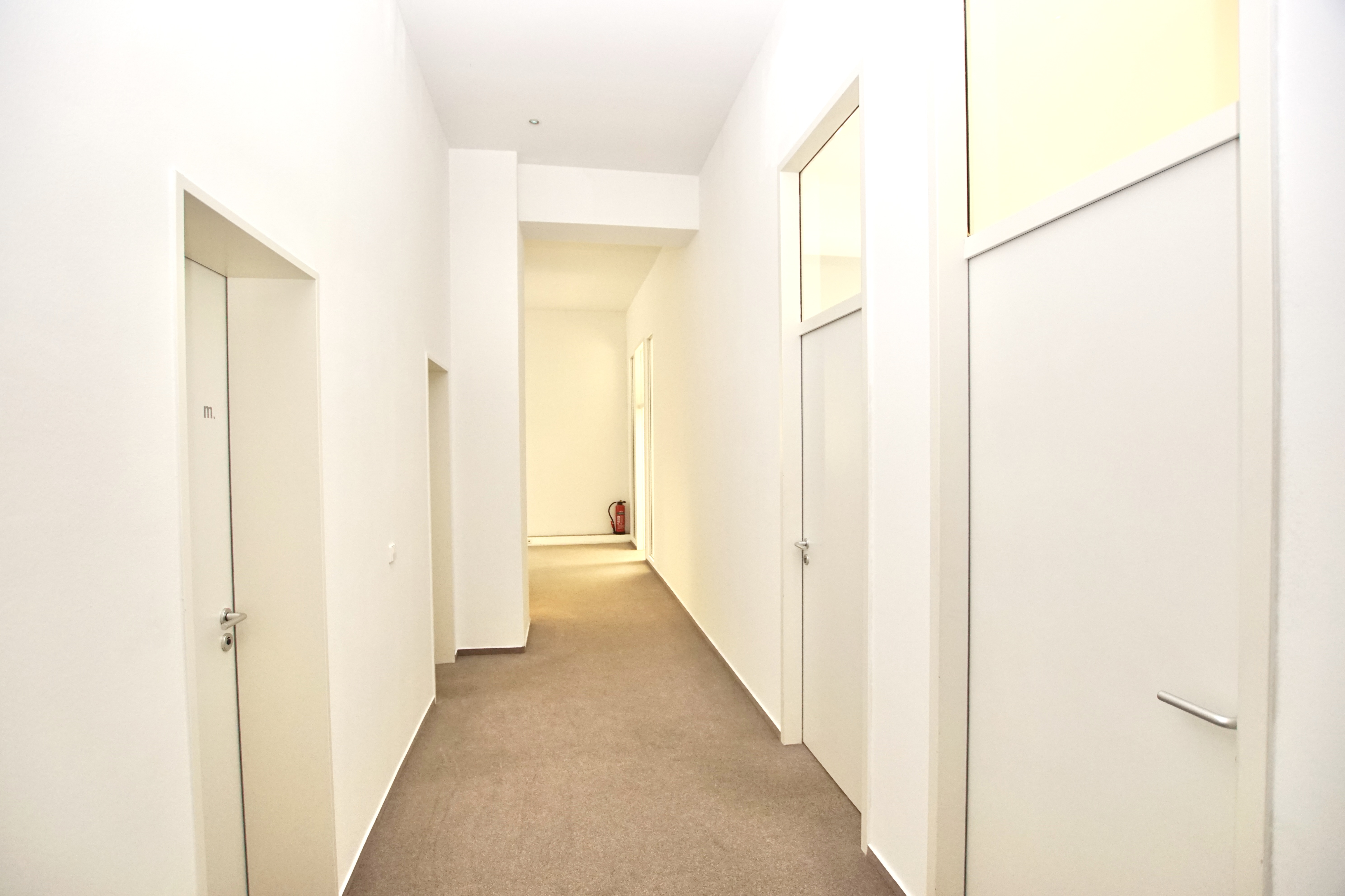 Die Räumlichkeiten zeichnen sich durch ihre großzügige Aufteilung aus. Die Zentralheizung sorgt für angenehme Wärme, während die hohen Decken und großen Fenster für eine helle und freundliche Arbeitsatmosphäre sorgen. Die Bürofläche bietet ausreichend Platz für individuelle Gestaltungsmöglichkeiten und ist ideal für Unternehmen, die nach einem repräsentativen Arbeitsumfeld suchen.