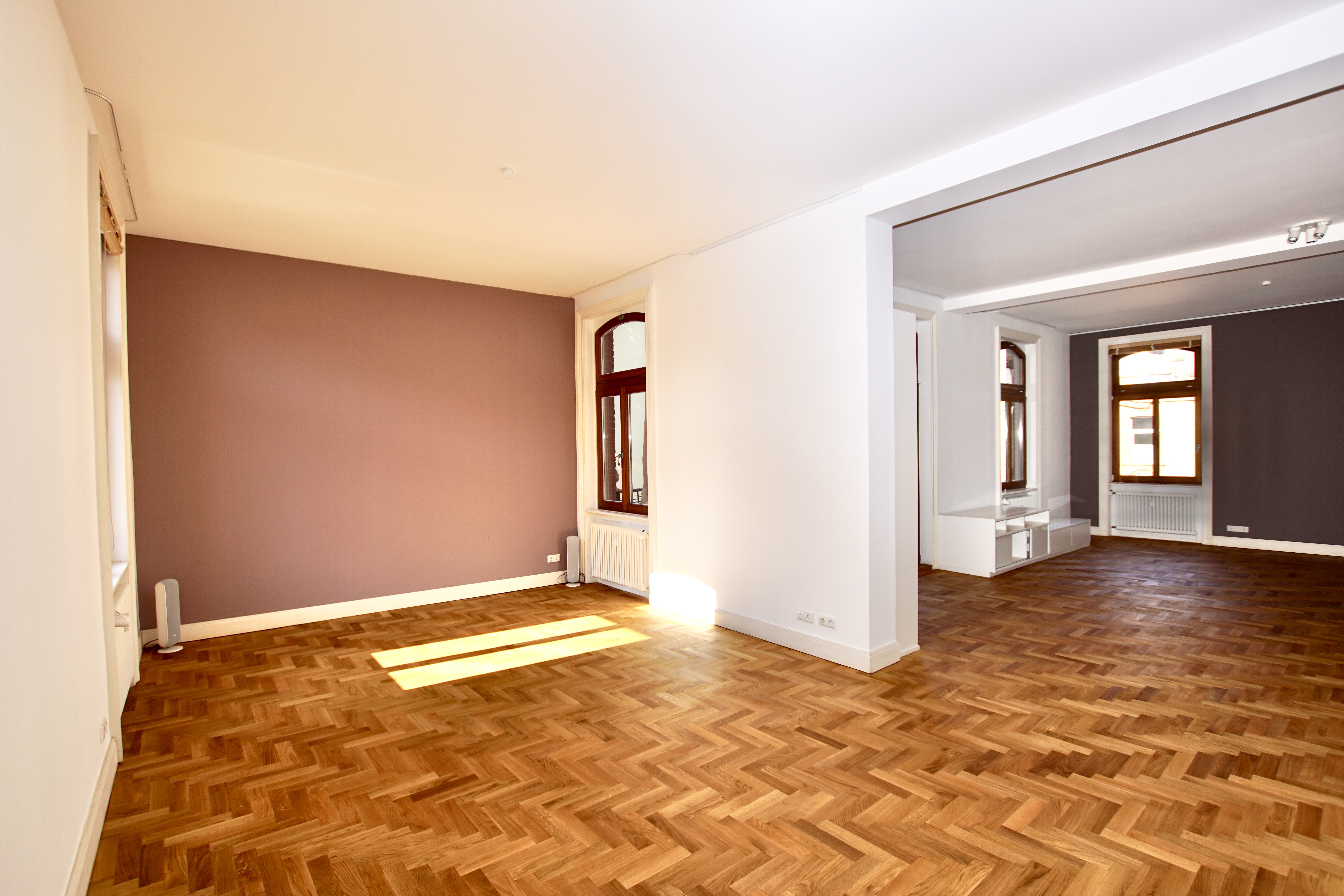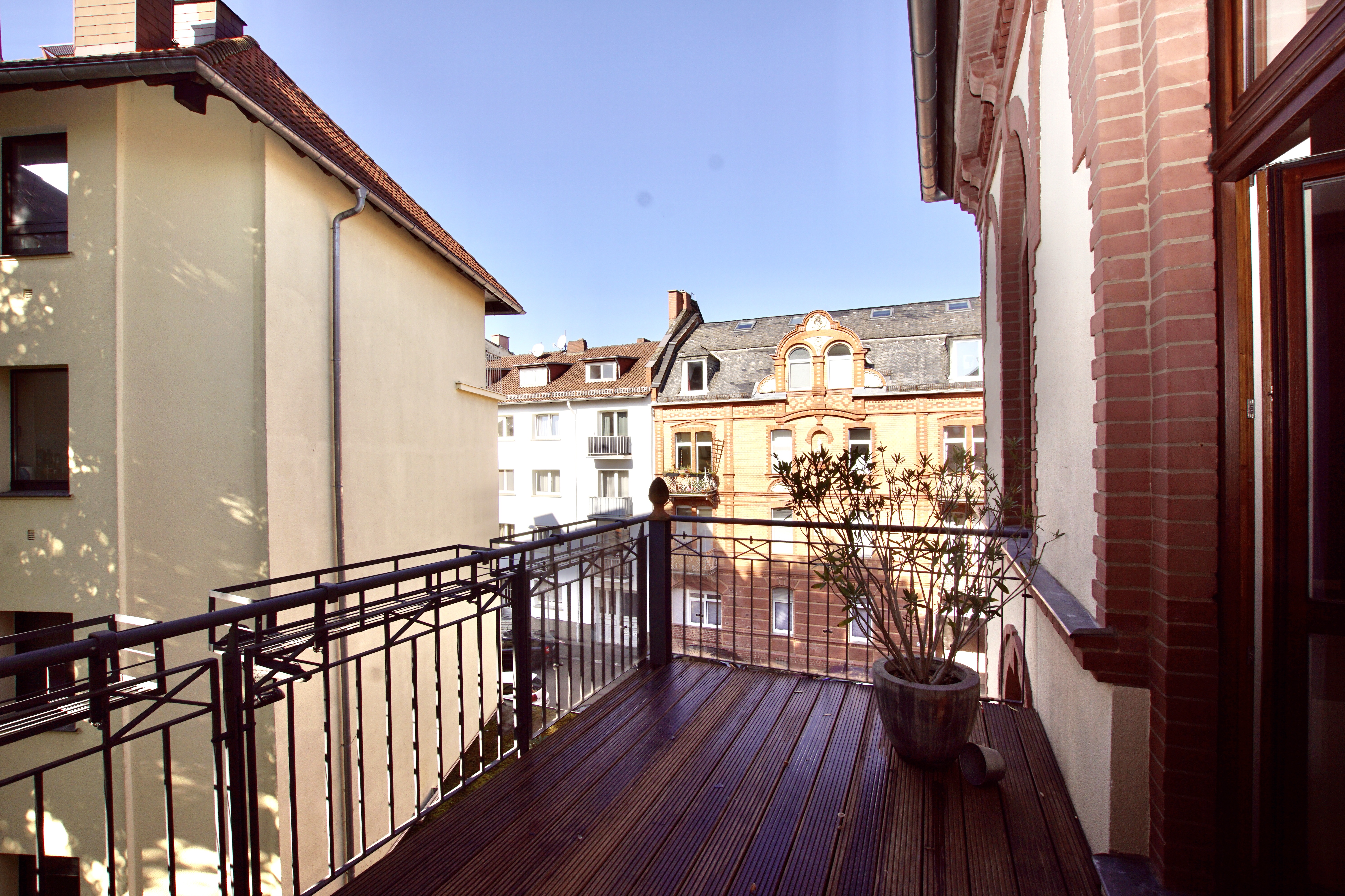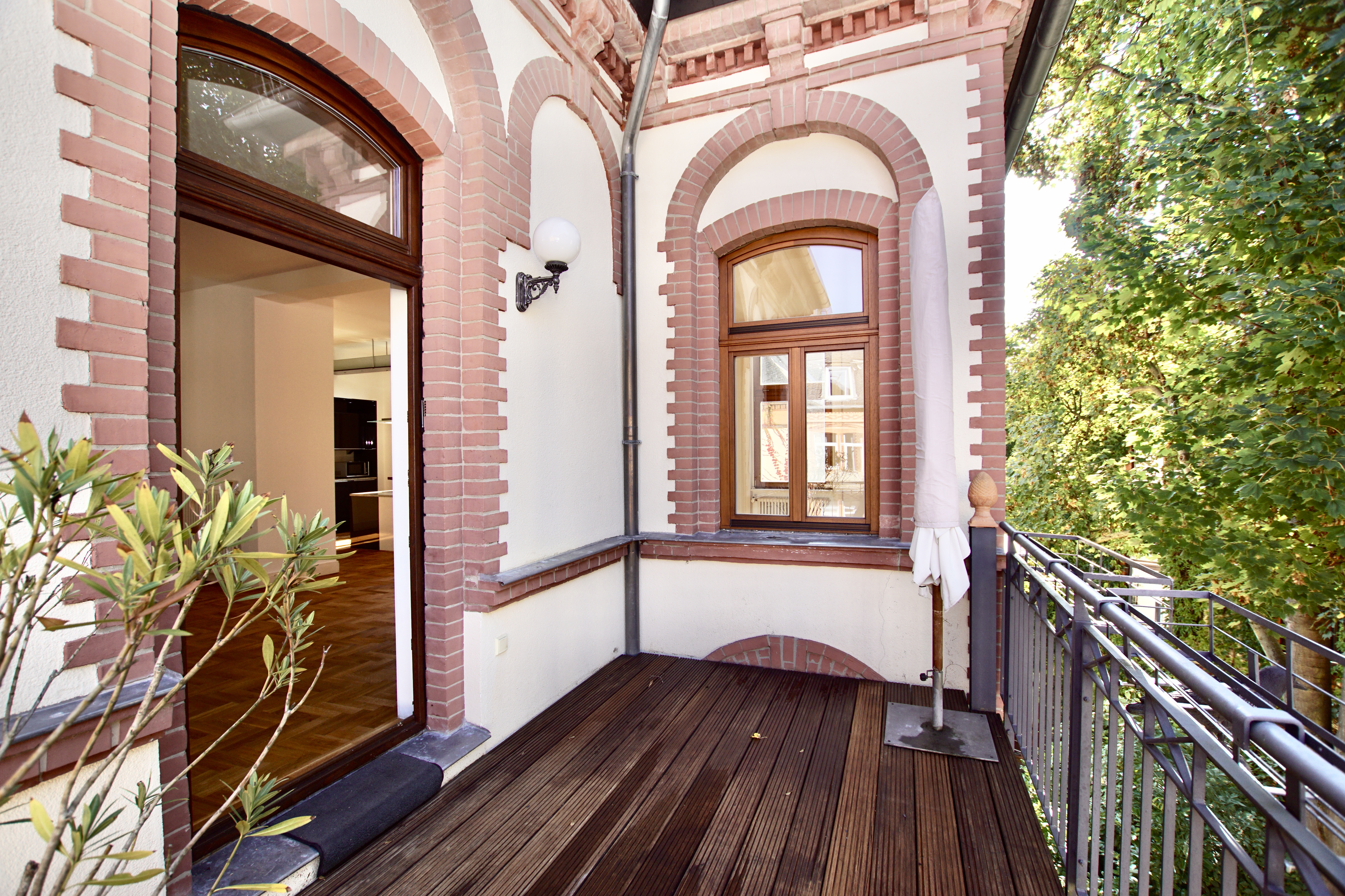Die zuletzt 2021 sanierte, denkmalgeschützte Stadtvilla liegt oberhalb der Wiesbadener Innenstadt.