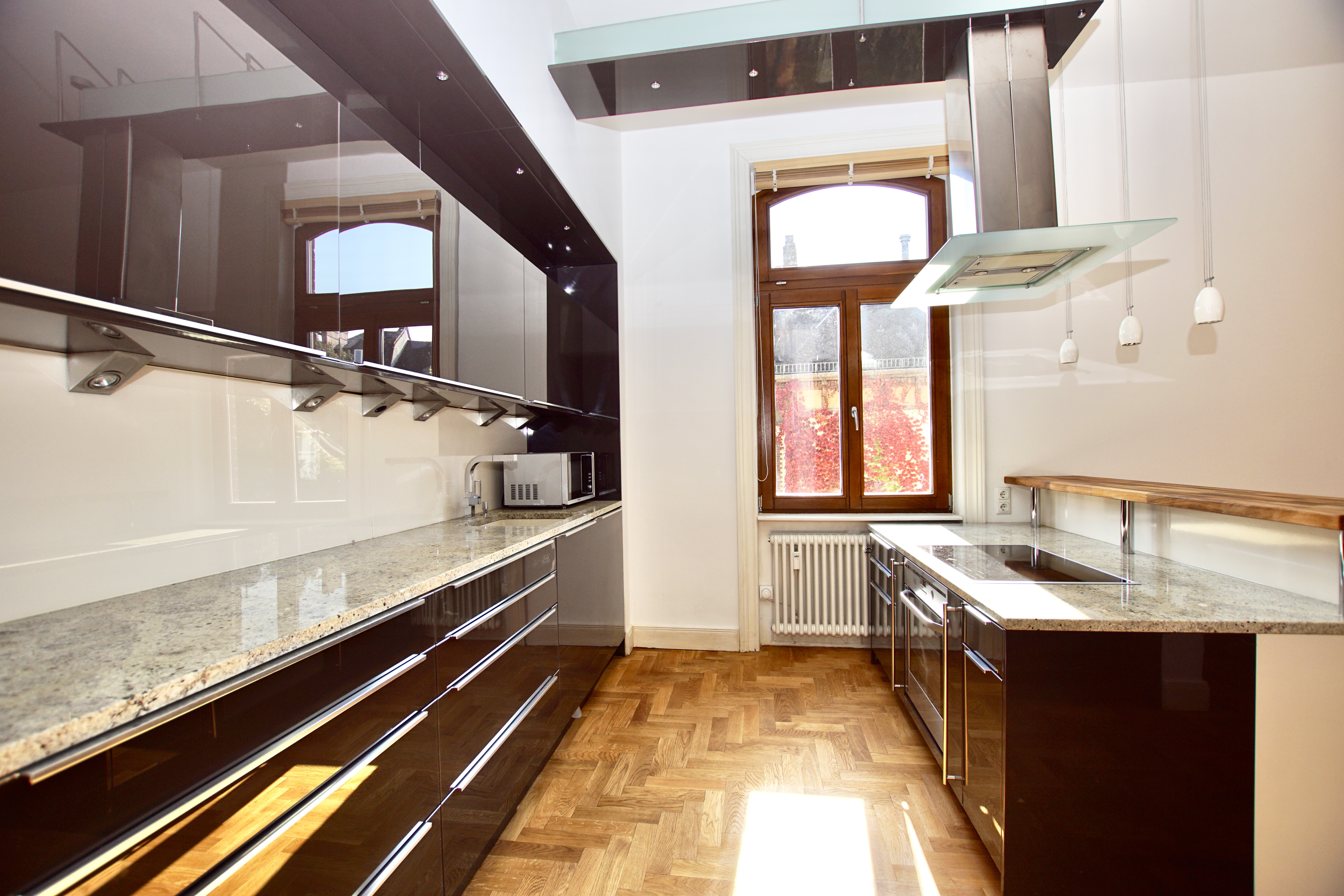 Mit viel Liebe zum Detail wurde hier eine exklusive Innenausstattung realisiert. Neben diversen Einbauschränken, Leuchten und Luxusbad kann man in der offenen hochwertigen Einbauküche seine Kochträume verwirklichen.
