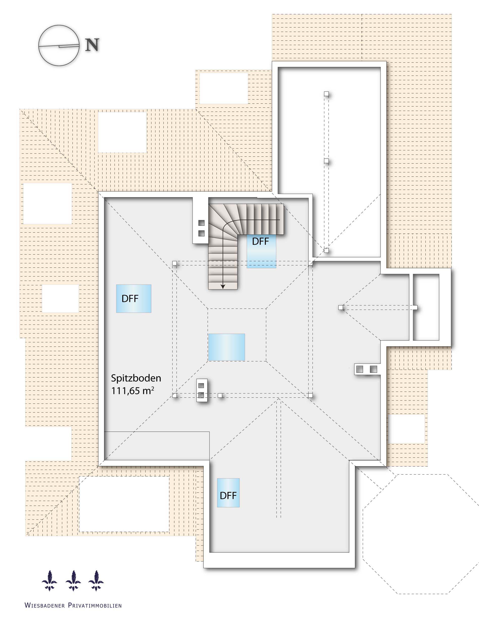 Die 4-Parteien-Villa, aufgeteilt in zwei Büro- und zwei Wohneinheiten liegt im Dichterviertel von Wiesbaden. Der kleine Garten steht zur allgemeinen Benutzung zur Verfügung.