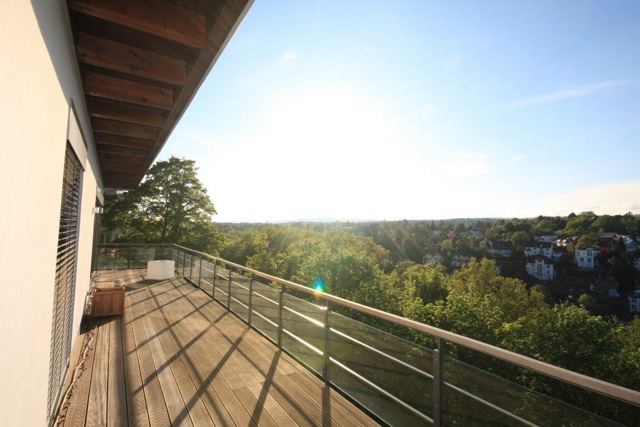 Traumblick! Auf einer Anhöhe von Wiesbaden Sonnenberg liegt dieses einmalige Penthouse mit atemberaubender Aussicht. Auf Grund der Hanglage geht man ebenerdig vom Hauseingang in die Wohnung. Die Innenausstattung ist auf höchstem Niveau: LED-Beleuchtung, Einbauküche, lederbezogener Einbauschrank, geölter Eichenboden, Glasgeländer auf der Terrasse.... Alles so gut wie neu. Auf Anfrage kann ein Teil der Möblierung mitverkauft werden.