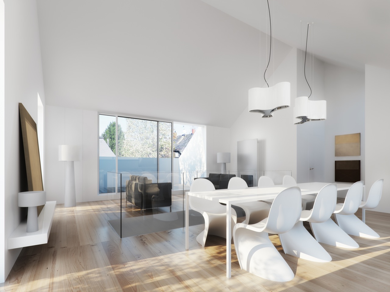 Vier Eigentumswohnungen Wiesbaden - Aukamm -Realisierung 2014. Die Wohnungen mit einer Größe zwischen 83 und 133 qm entstehen auf einem alt eingewachsenen Grundstück. Modernste Technik verbunden mit gradliniger Architektur. Sie können Ihre eigenen Wohnträume realisieren. Eine Nutzung als Doppelhaus ist ebenfalls möglich.