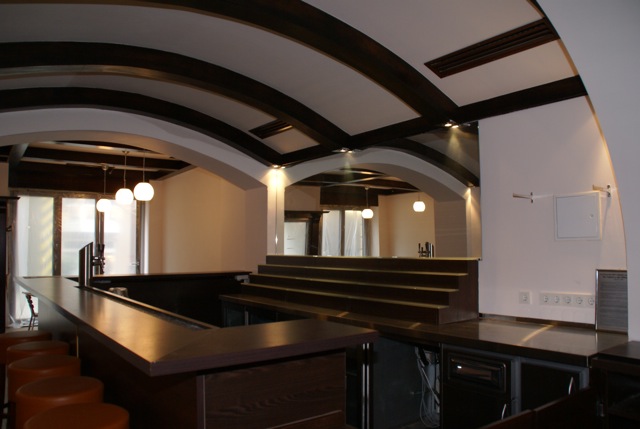 Gemütliches Restaurant in der Wiesbadener Altstadt - hier mischt sich modernes Design und Technik mit schönen Altbauelementen. Ideal für ein zünftiges Restaurantkonzept oder eine Cocktail-Bar.