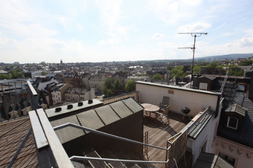 Über den Dächern von Wiesbaden - traumhaftes Penthouse im 5. Stock einer denkmalgeschützten Villa im Herzen der Stadt. Der großzügige offene Wohn- Essbereich mit Galerie, drei separate Zimmer, große Einbauküche und zwei Terassen sind überzeugend. Genießen Sie den 360 Grad-Blick über die Stadt - Kurhaus - historisches 5-Eck, Neroberg. In einer fußläufig gelegenen Tiefgarage können PKW-Stellplätze problemlos dazu gemietet werden.