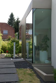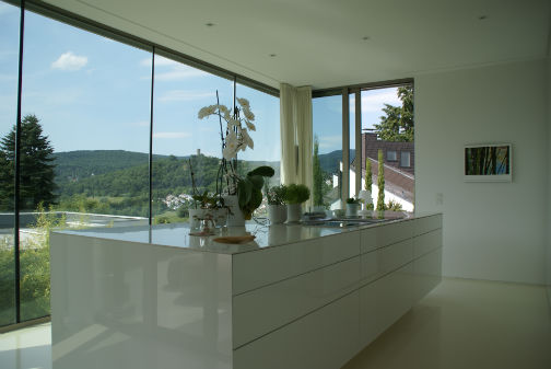 Die in bester Halbhöhenlage von Königstein 2008 erbaute Villa zeichnet sich durch konsequent puristische Architektur aus. Durch die großzügige Eingangshalle gelangen Sie in die Wohnebene der Villa. Die Bereiche Kochen, Essen und Wohnen sind offen angelegt, können aber durch raumhohe Schiebetüren voneinander getrennt werden. Durch die ebenfalls raumhohen Fensterfronten genießen Sie die phantastische Aussicht auf den Taunus. Im Obergschoß der Villa befinden sich die Schlafzimmer, aufgeteilt in Elternbereich mit separatem Bad und Ankleide sowie der Kindertrakt. Zwei abgeschlossene 1- und 2- Zimmer Wohneinheiten/Büro oder Praxis im Gartengeschoß bieten eine extrem hohe Flexibilität der Nutzung. Drei Terrassen, Balkon, zwei Garagenstellplätze und ein Aufzug runden das Angebot ab.