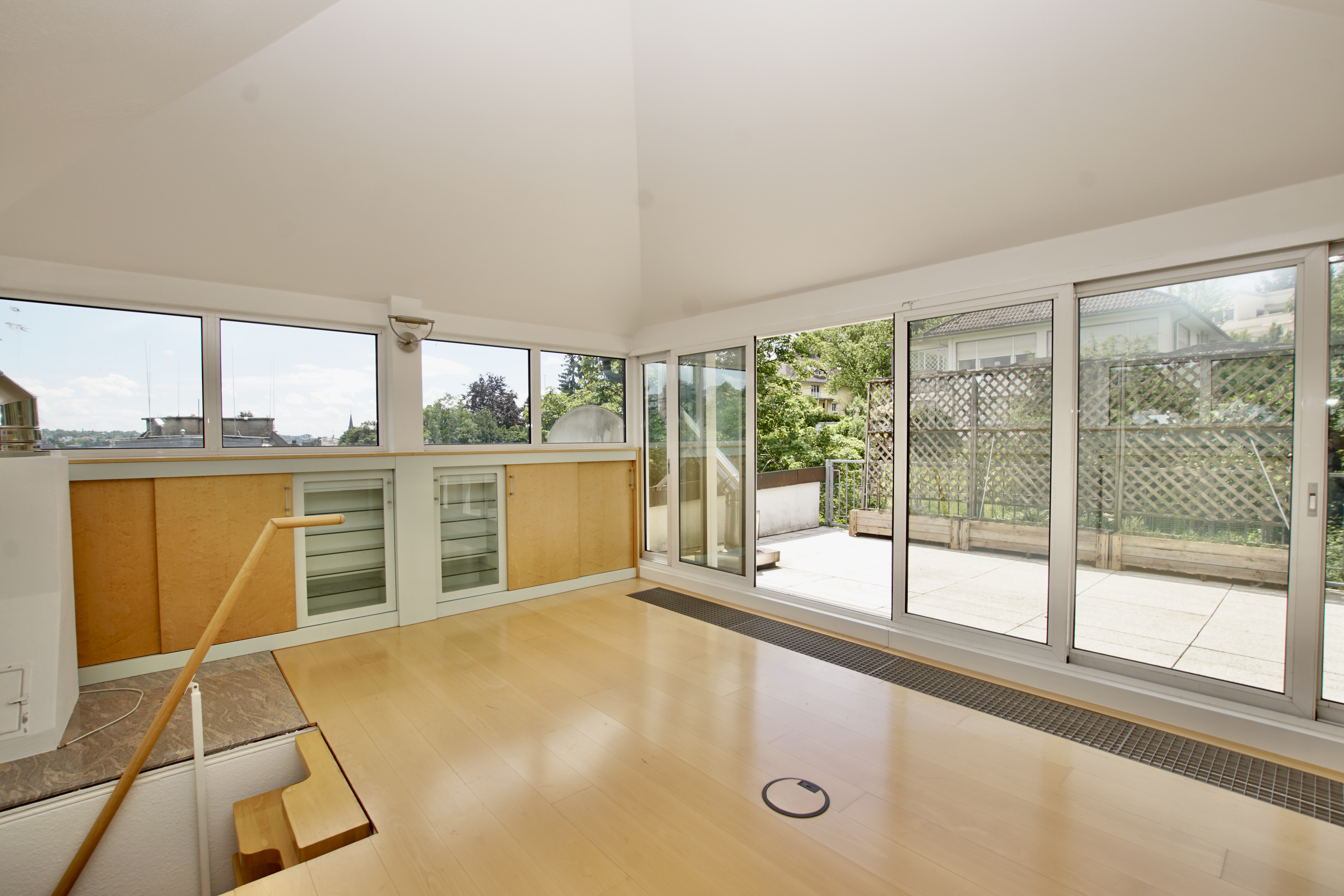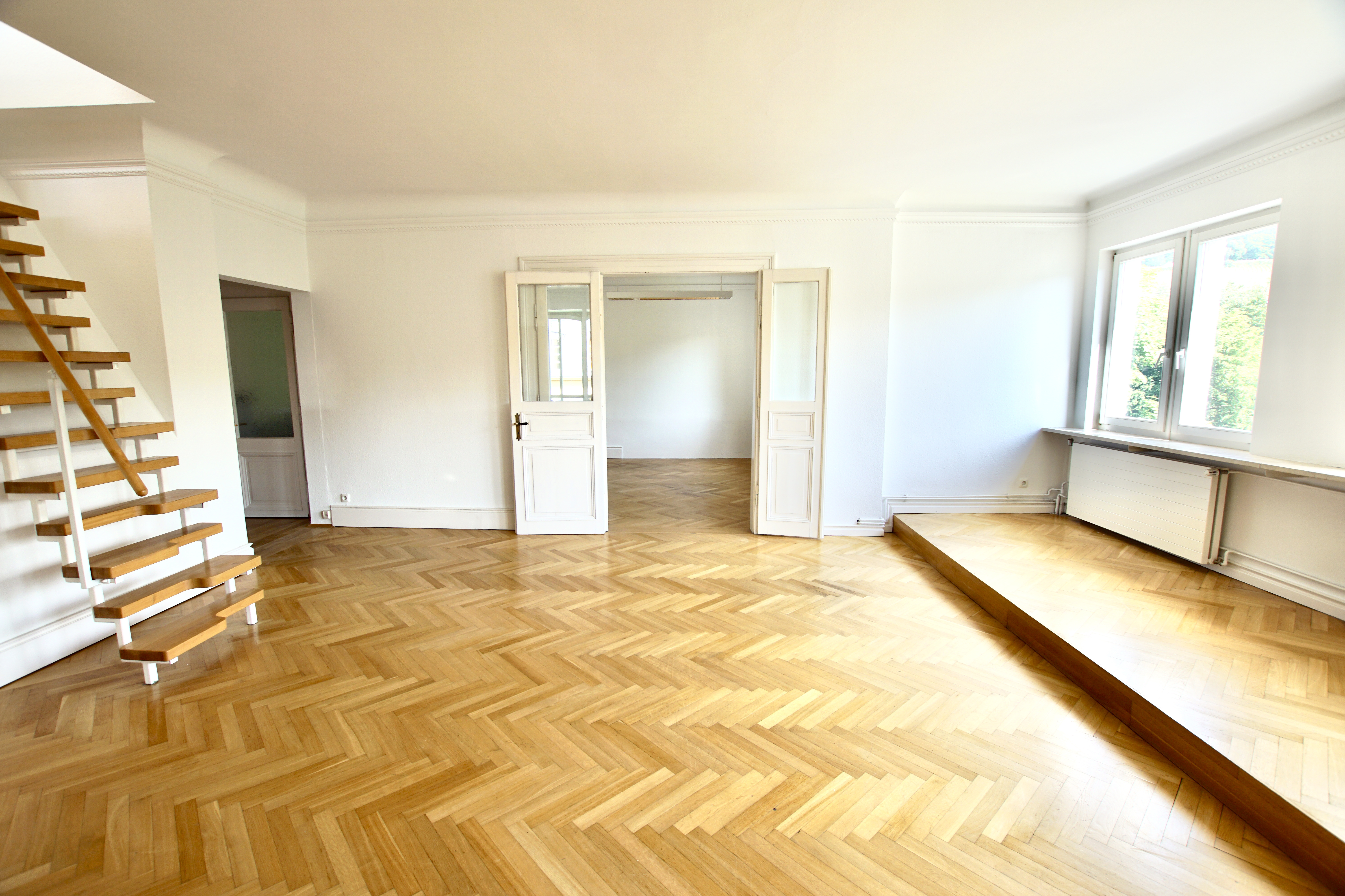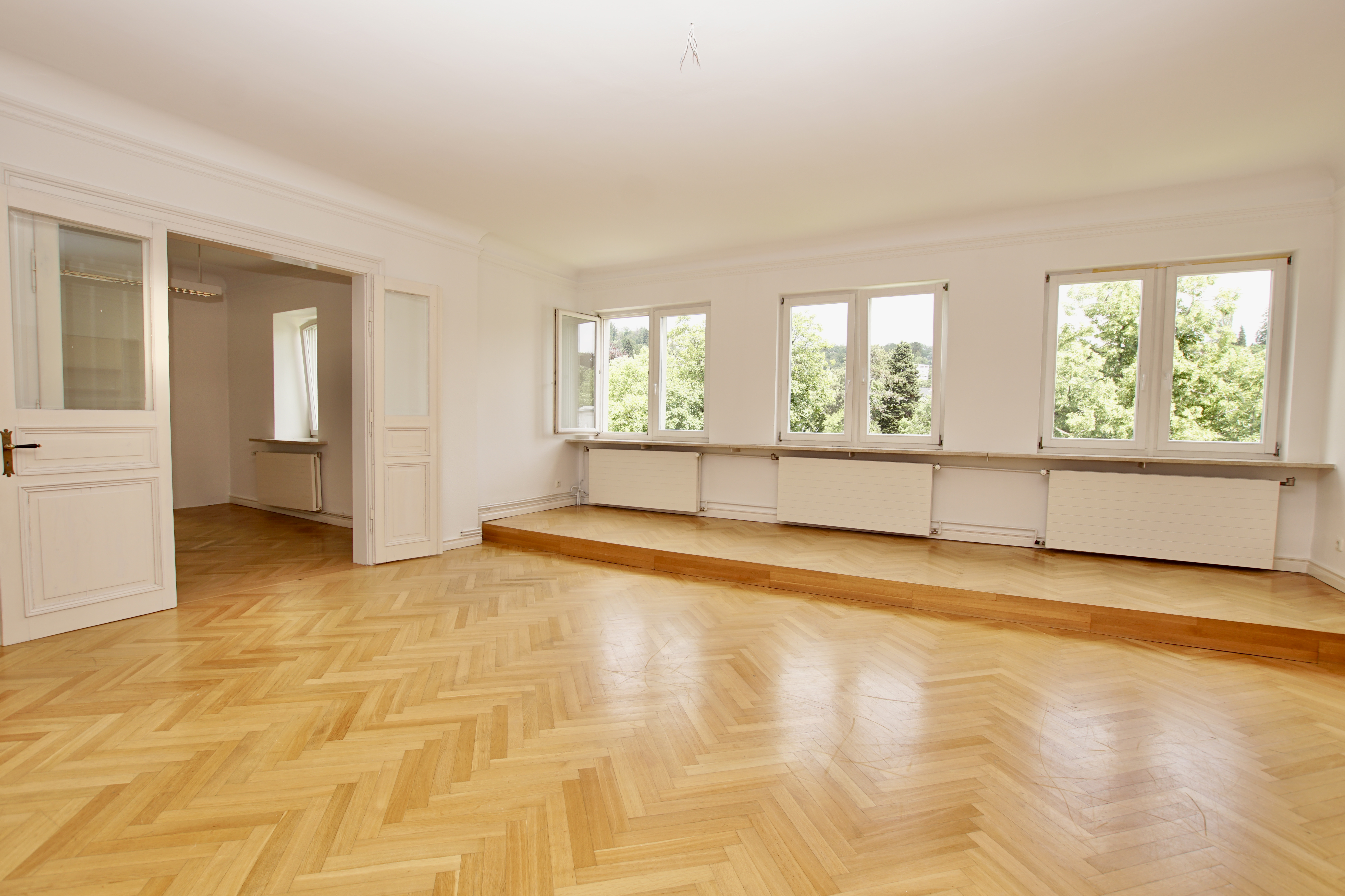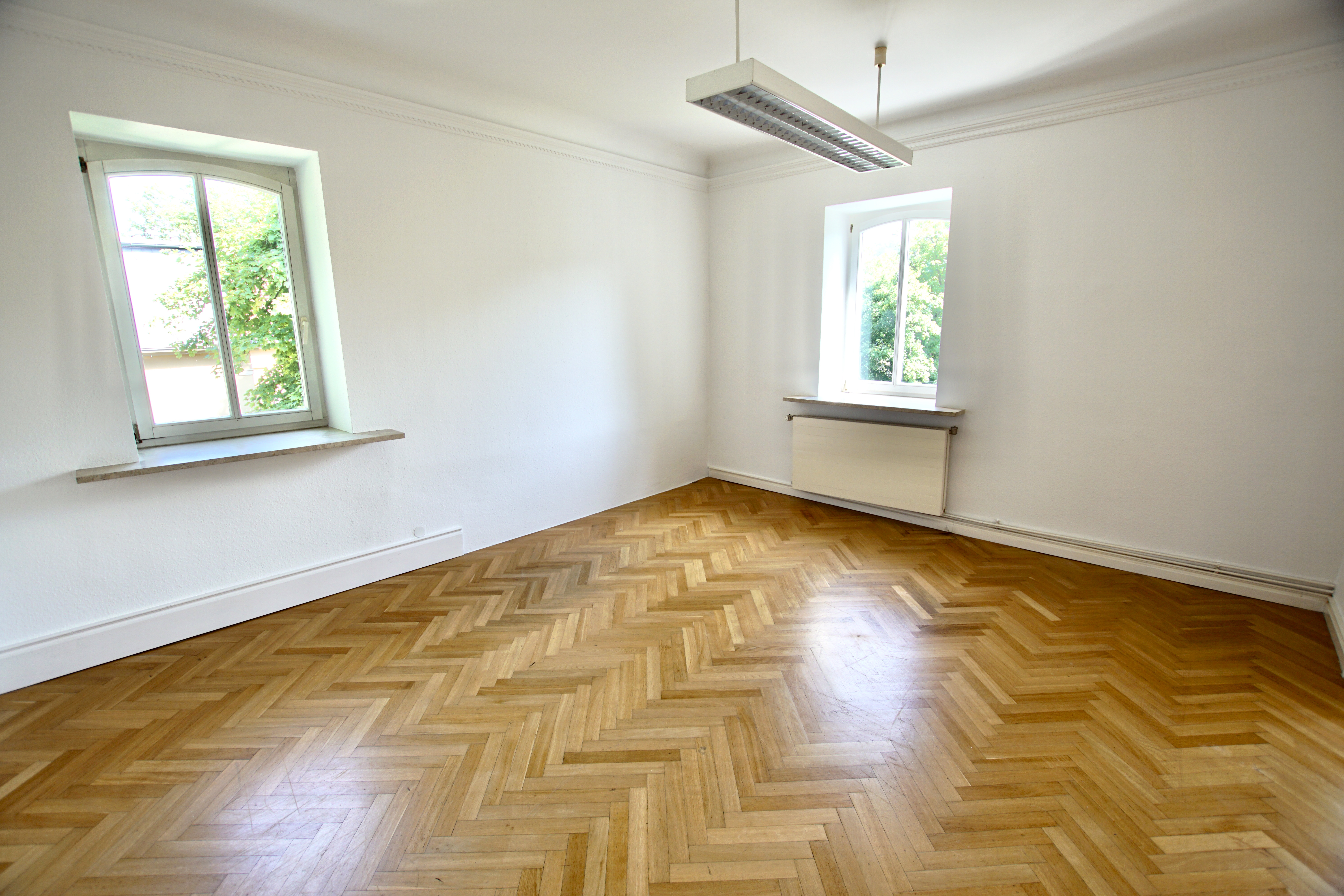 Die Aufteilung der Wohnung lässt eine Nutzung unterteilt in privaten Wohnraum und einen Bürobereich mit separatem Zugang und eigener Toilette zu. Ideal für Selbständige, die Wohnen und Arbeiten unter einem Dach vereinigen möchten.