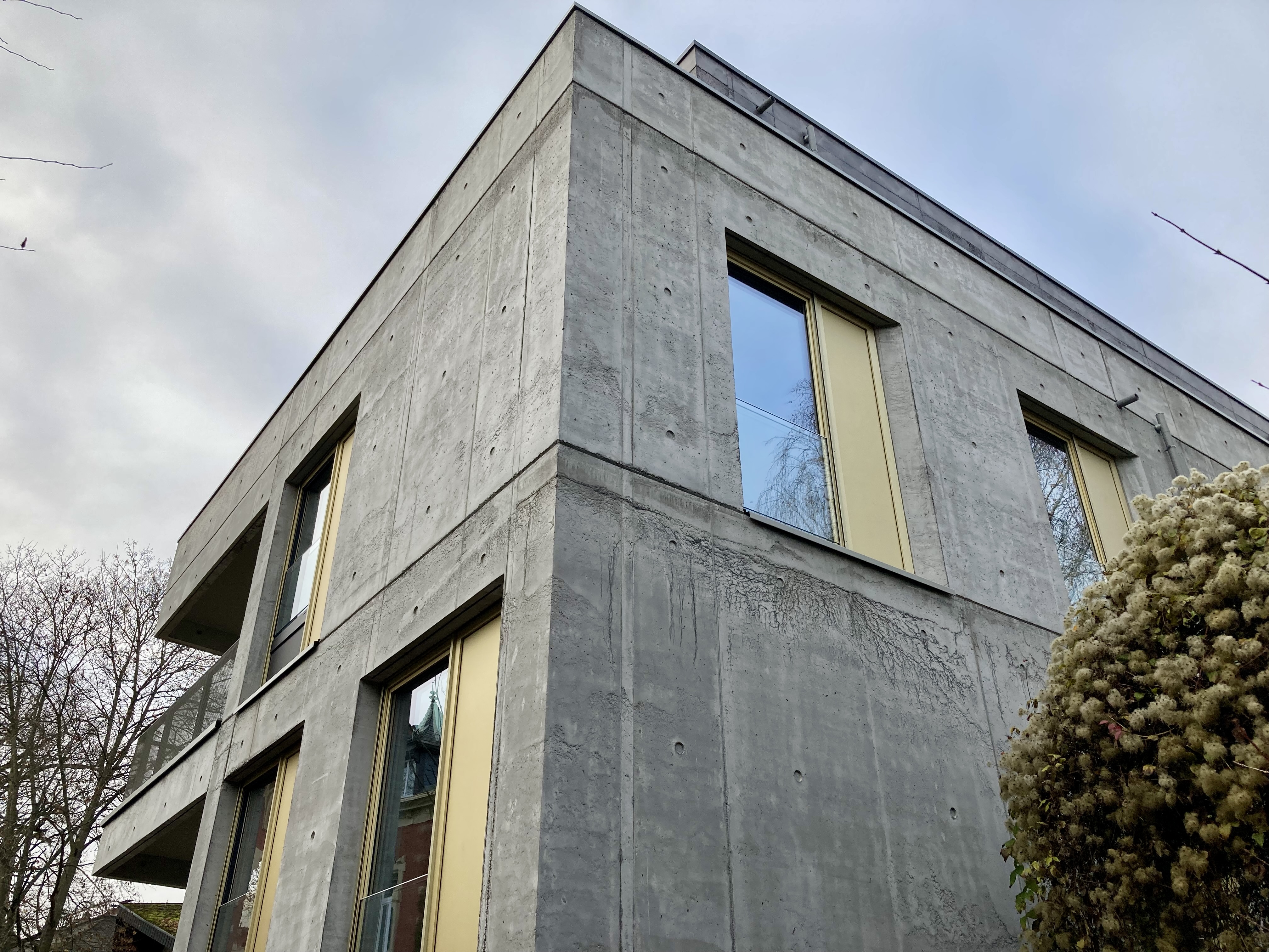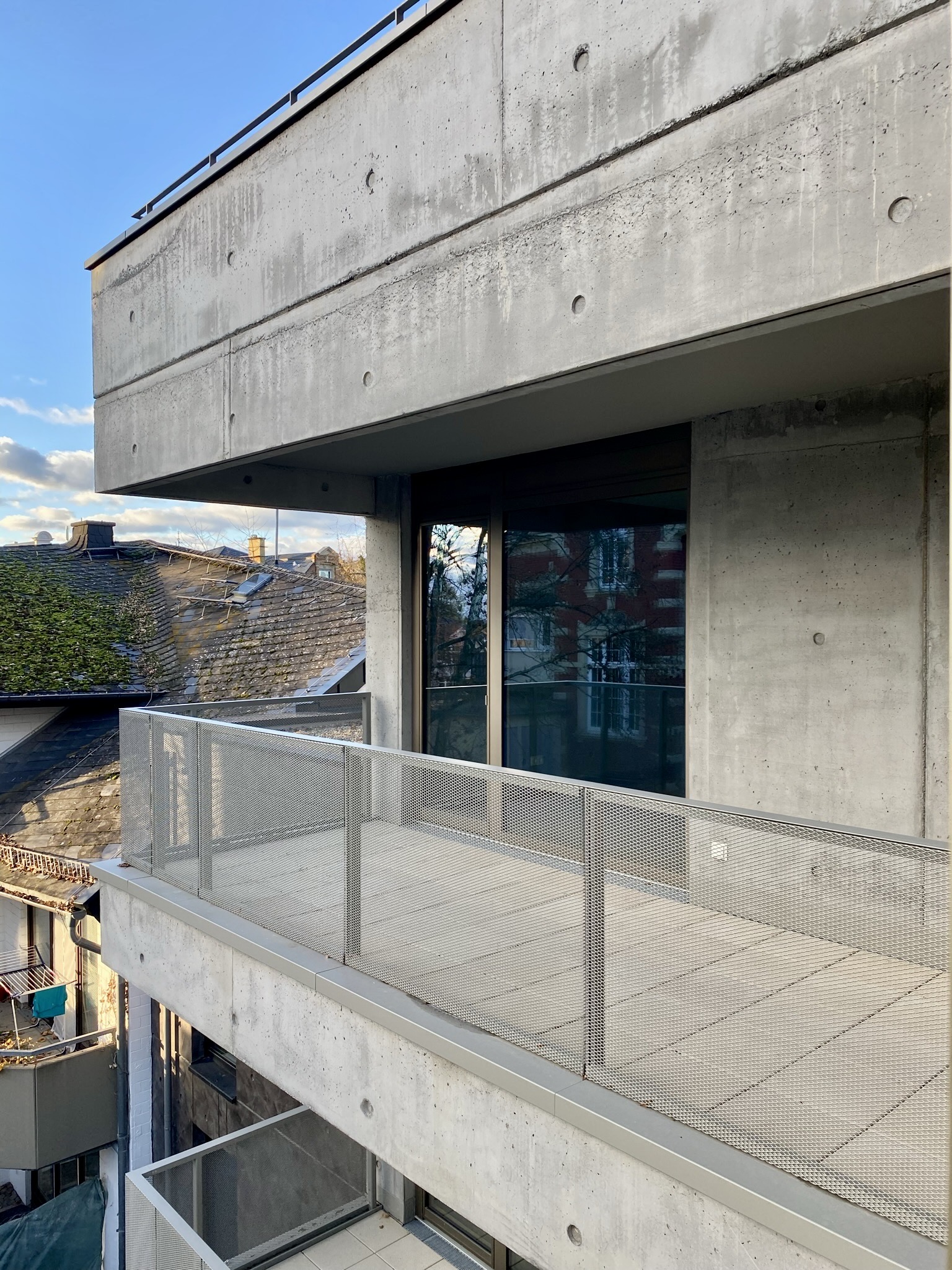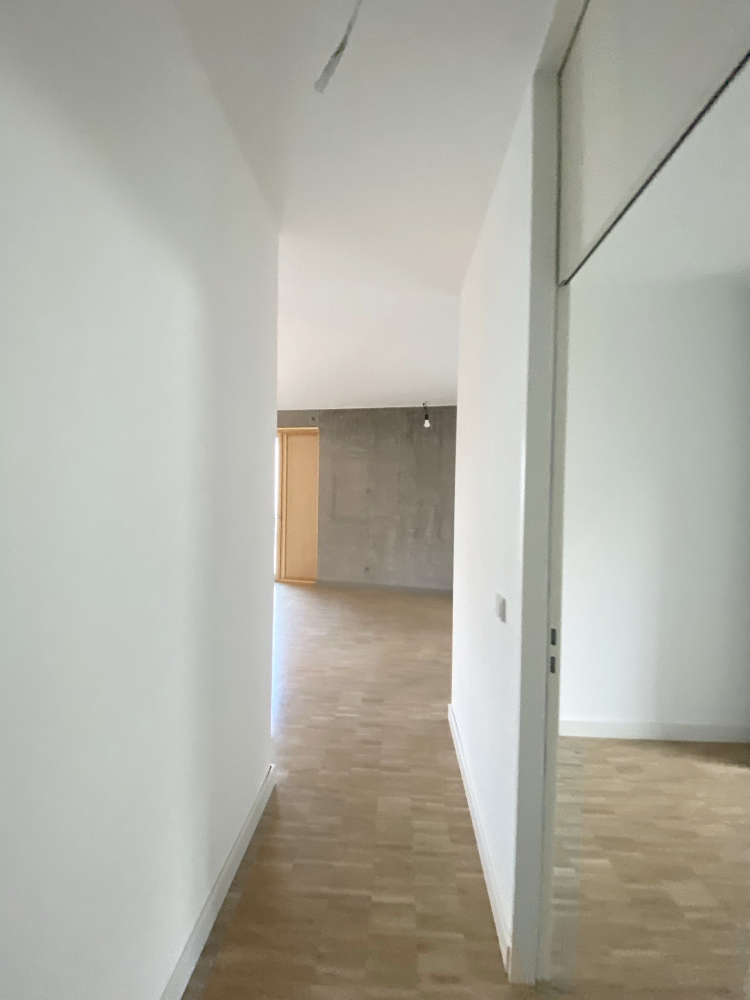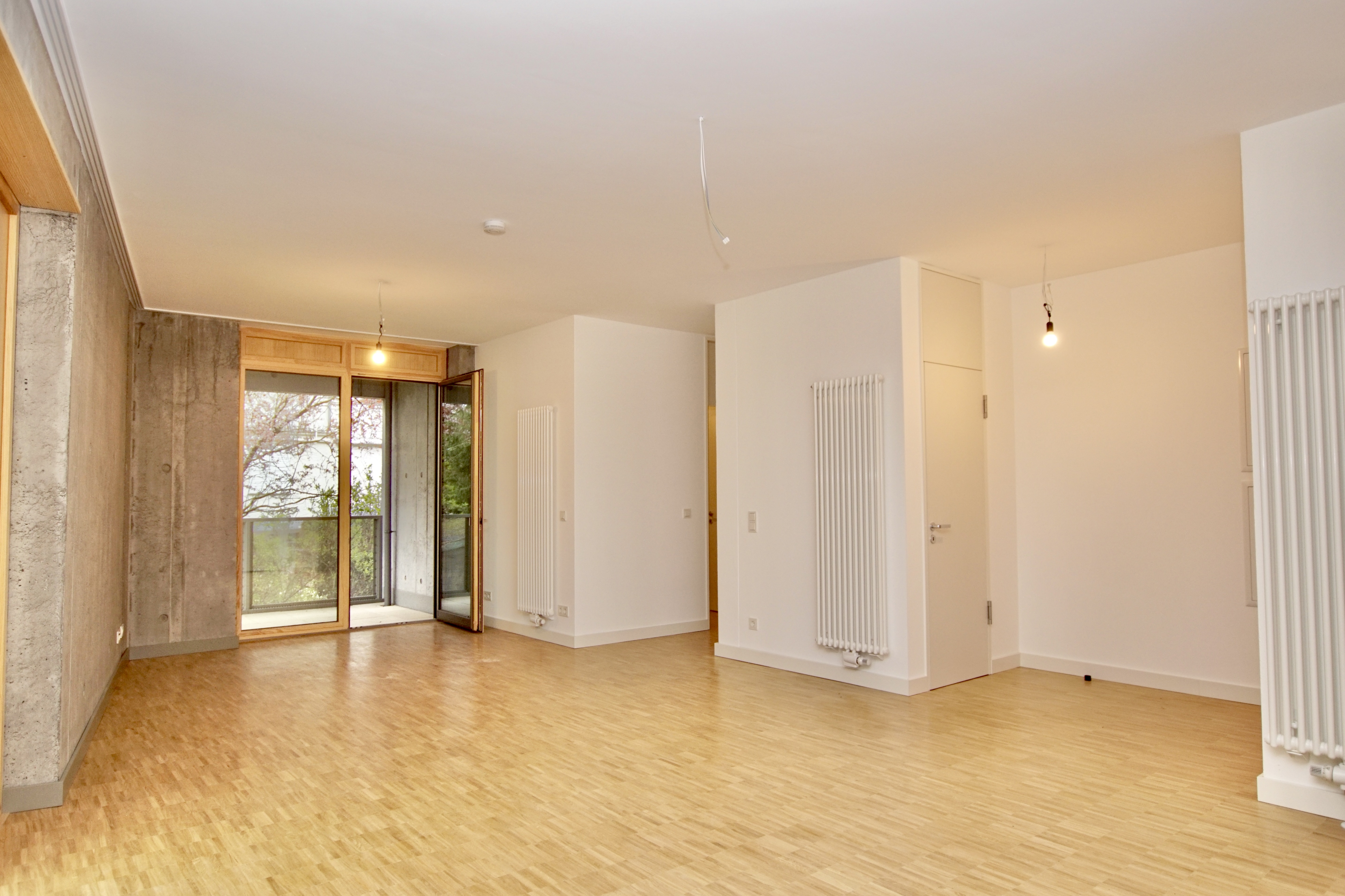 Die im Frühjahr 2022 fertiggestellte Wohnung im 1. Obergeschoß eines modernen Mehrparteienhauses aus stylischem Sichtbeton, bietet mit seinem charmant geschnittenen Grundriss das ideale Zuhause für Singles und Paare.