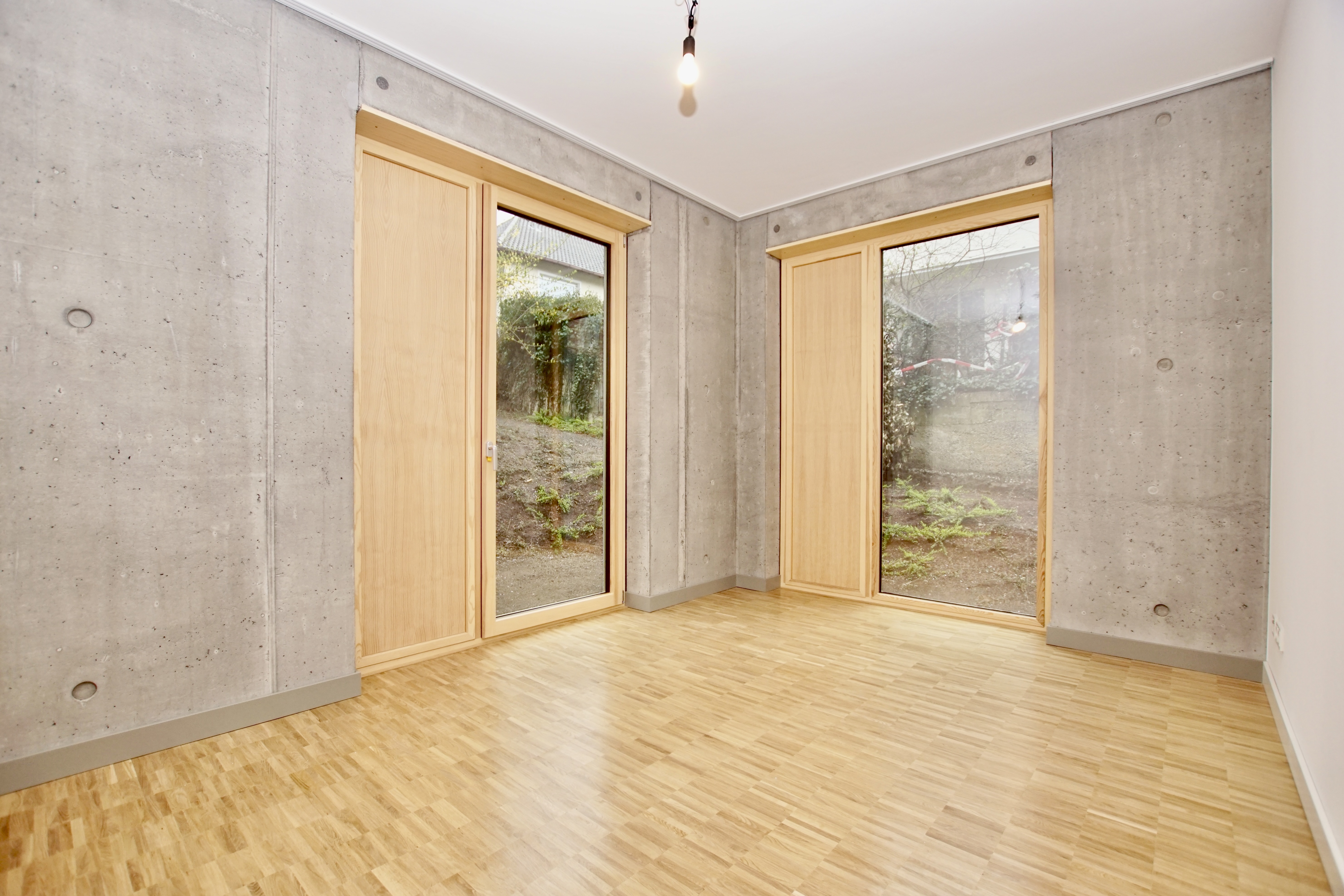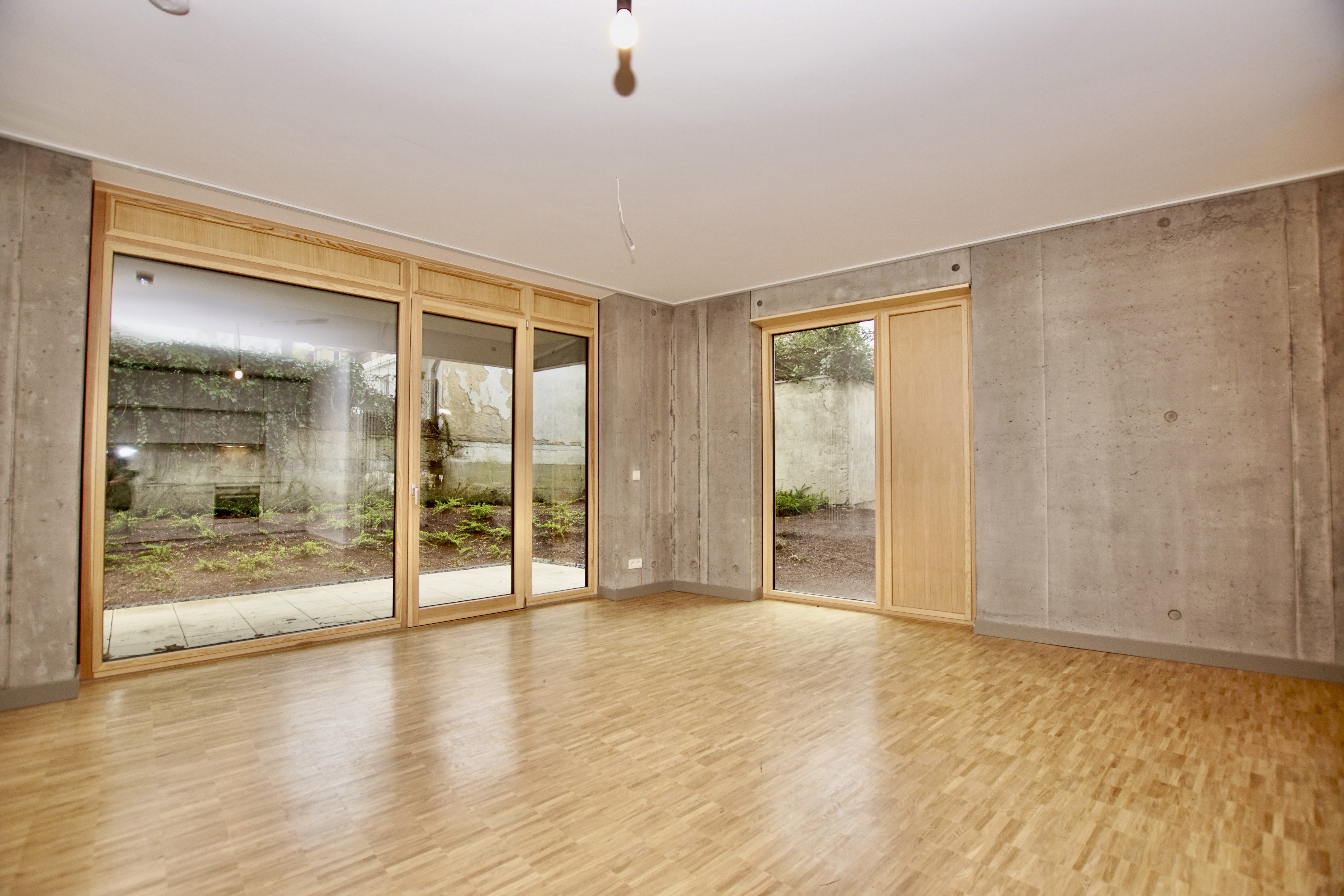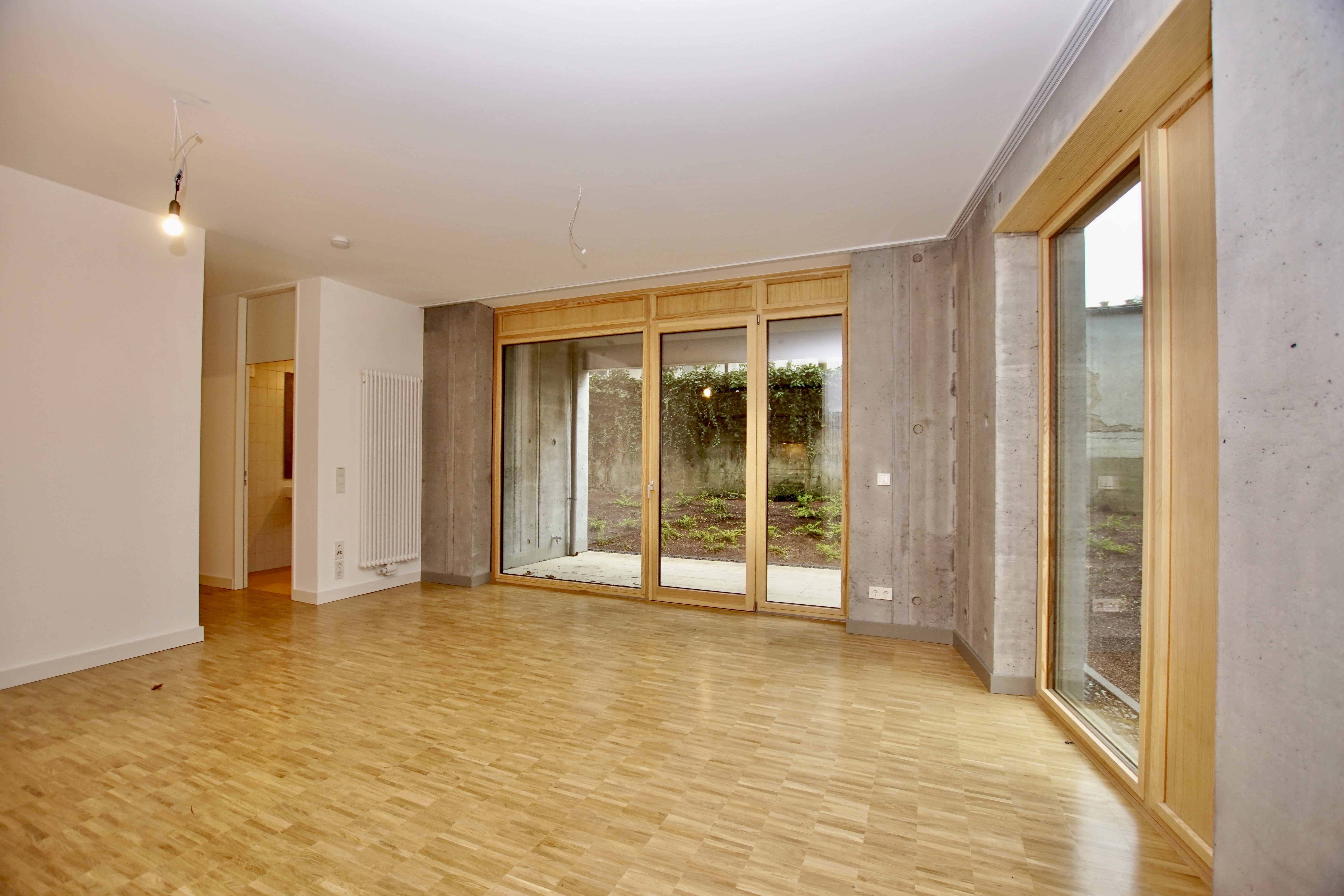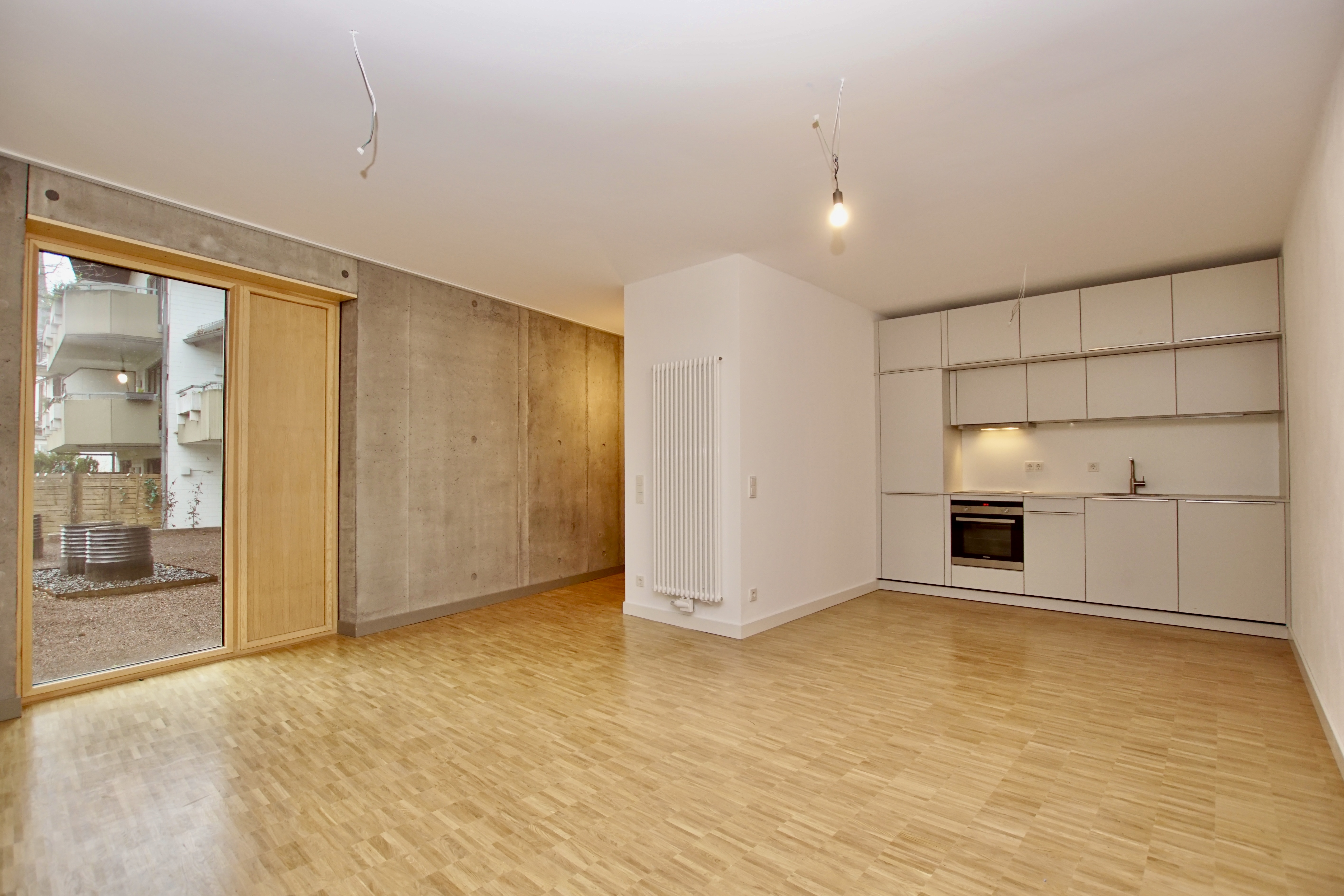 Die im Frühjahr 2022 fertiggestellte Wohnung im Erdgeschoß eines modernen Mehrparteienhauses aus stylischem Sichtbeton, bietet mit einem charmant geschnittenen Grundriss und einer Südterrasse das ideale Zuhause für Singles und Paare.