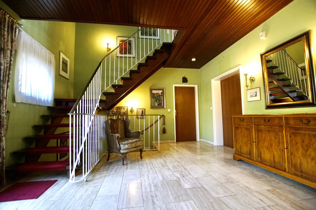 Das großzügige geschnittene Einfamilienhaus mit Einliegerwohnung liegt in perfekter Hanglage des begehrten Vorortes Breckenheim im Osten von Wiesbaden.