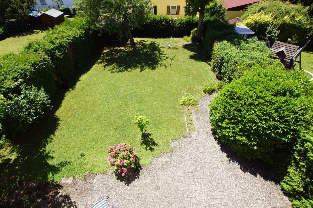 Besonderes Highlight ist der über 500qm große Süd-Westgarten mit historischem Baumbestand und einer idealen Größe für Gartengenießer und junge Familien.