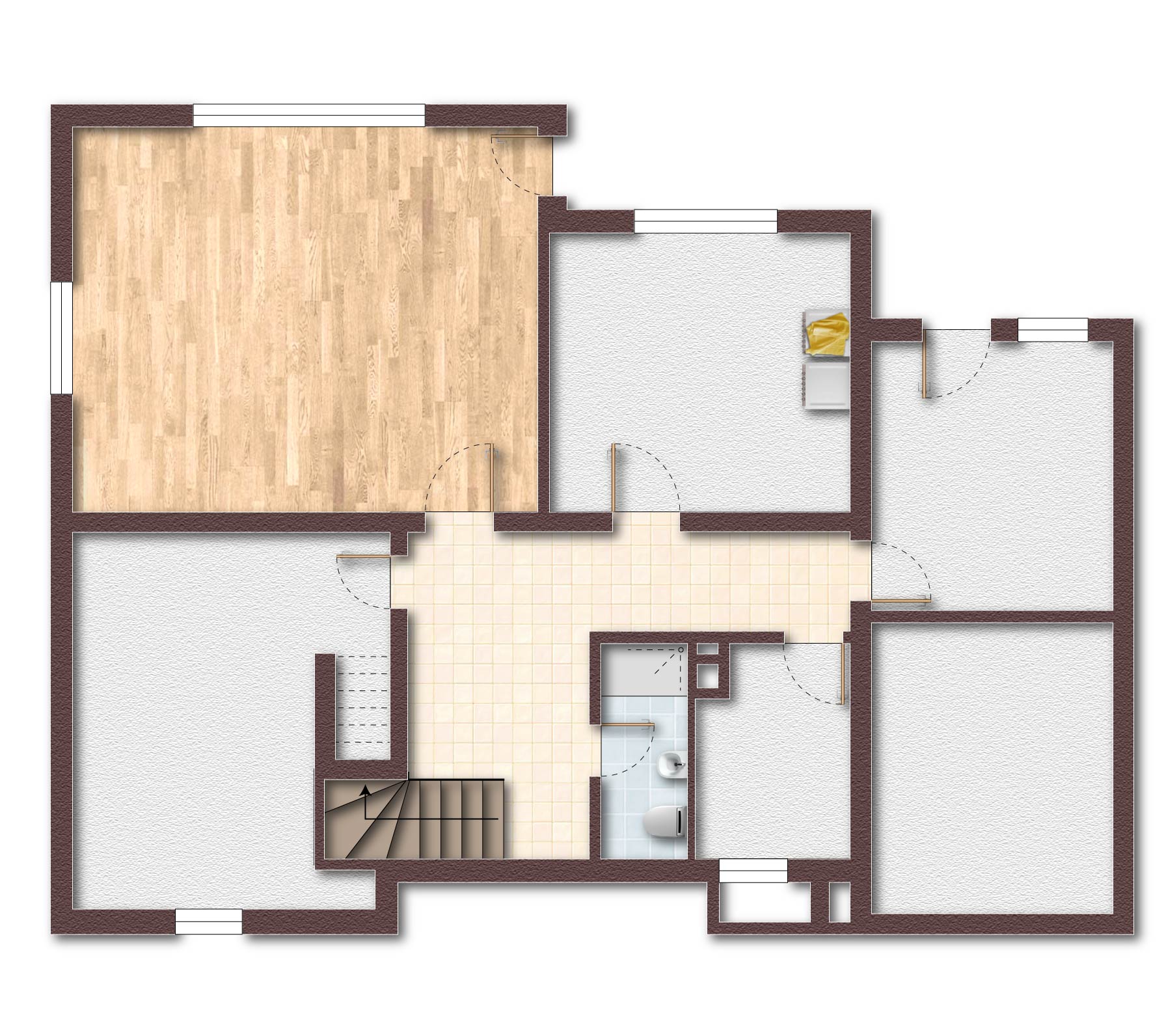 Beim Betreten des Hauses eröffnet sich die großzügige Diele mit dem schwungvollen Treppenhaus. Die Aufteilung ist klassisch mit dem Wohn-Essbereich, der großen Küche und dem Gäste-WC im Erdgeschoss. Drei Schlafzimmer und das große Tageslichtbad befinden sich im Obergeschoss. Eine Einliegerwohnung im Untergeschoss mit separatem Zugang ergänzt das Wohnangebot.