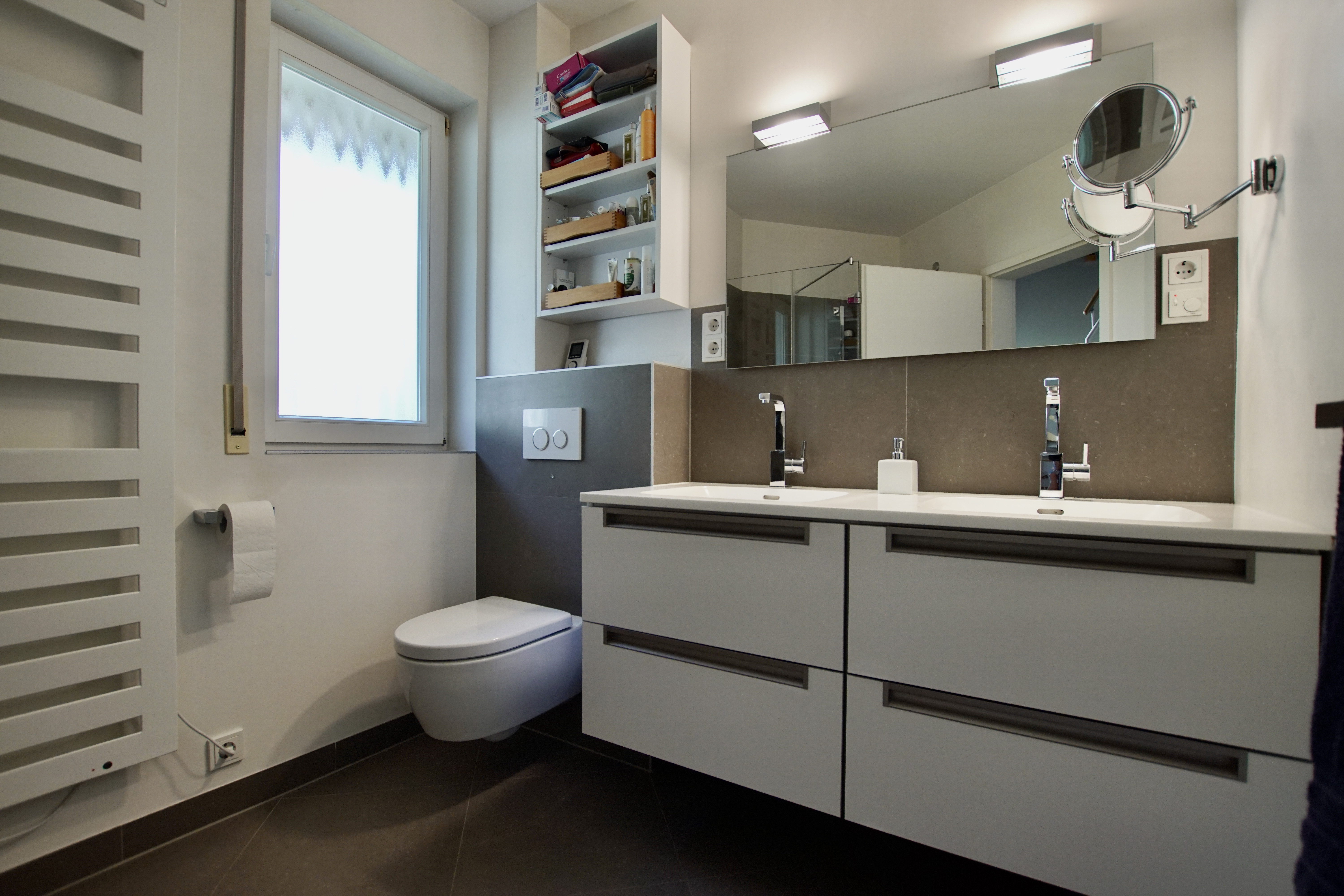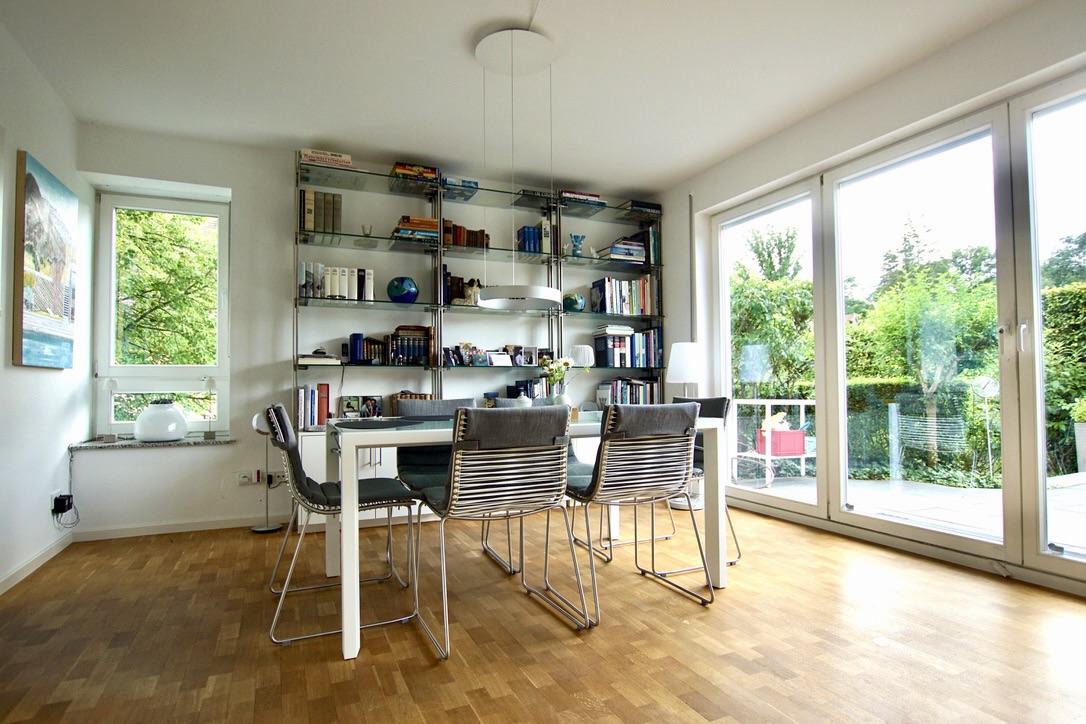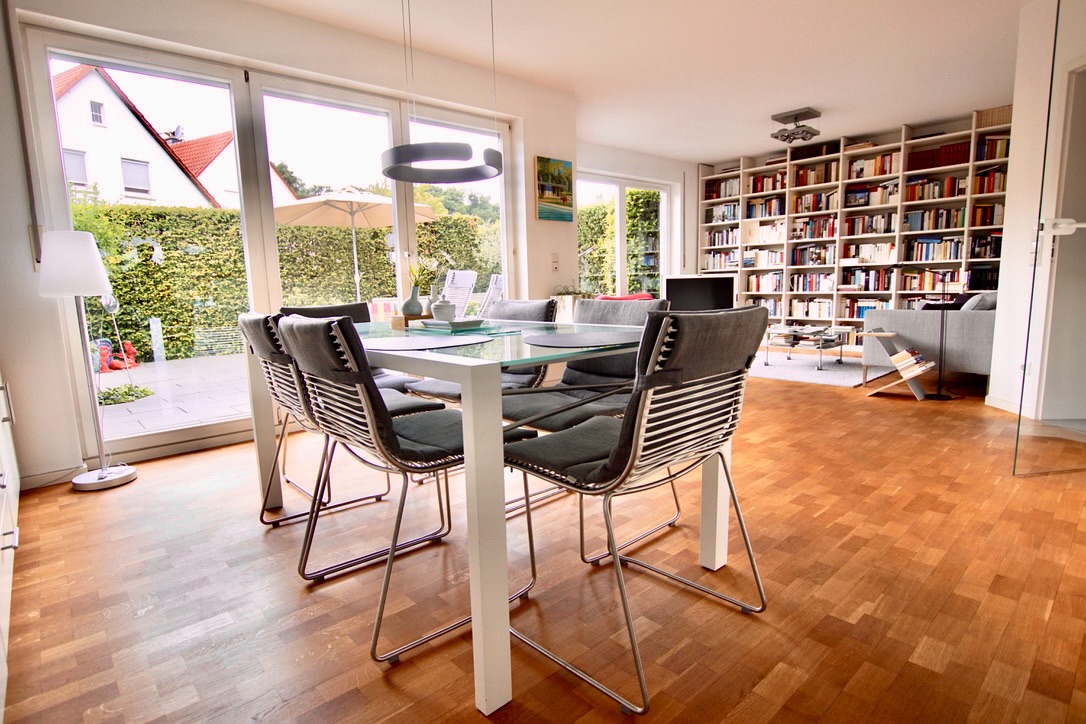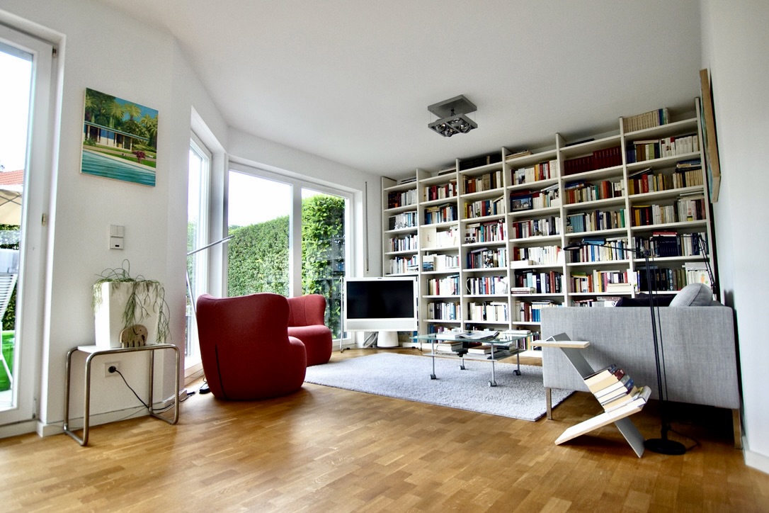 Die klassische Raumaufteilung ist ideal für Familien und Paare mit großem Platzbedarf. Im Erdgeschoss mit großzügigem Wohn-, Ess- und Küchenbereich gelangen Sie auf die Terrasse und in den eingewachsenen Süd-West Garten. Das 1. Obergeschoss mit drei Schlafzimmern und einem großen Badezimmer bietet ausreichend Platz. Ein separater Lounge-/Arbeitsbereich im 2. Obergeschoss rundet das Wohnangebot ab.