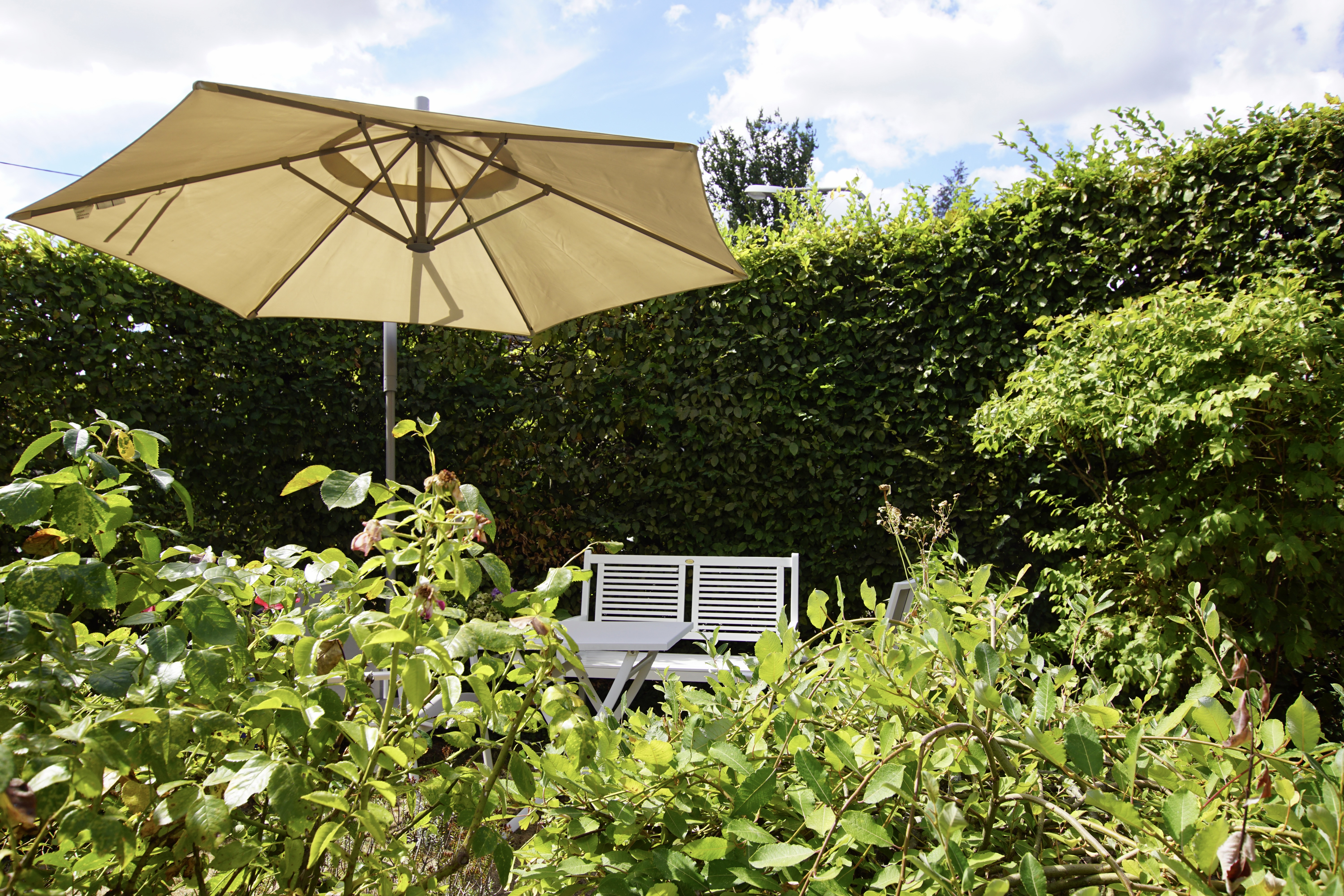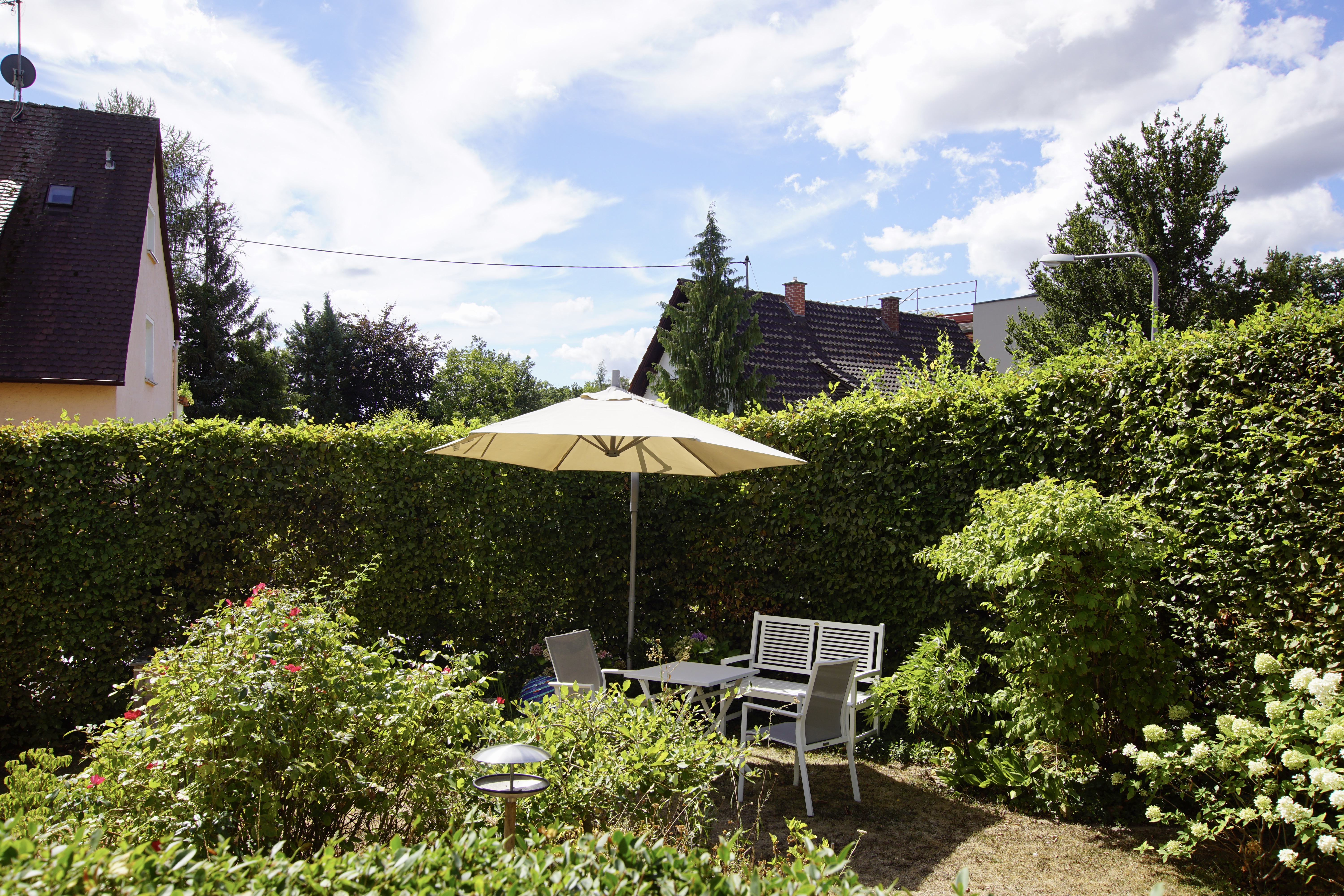 Der nach Süden ausgerichtete Garten bietet mit seiner gemütlichen Terrasse ausreichend Möglichkeiten zum Chillen, Gärtnern, Spielen und Entspannen im Grünen. Genießen Sie die Ruhe und die Nähe zur Natur mit gleichzeitig guter Anbindung an die Innenstadt.