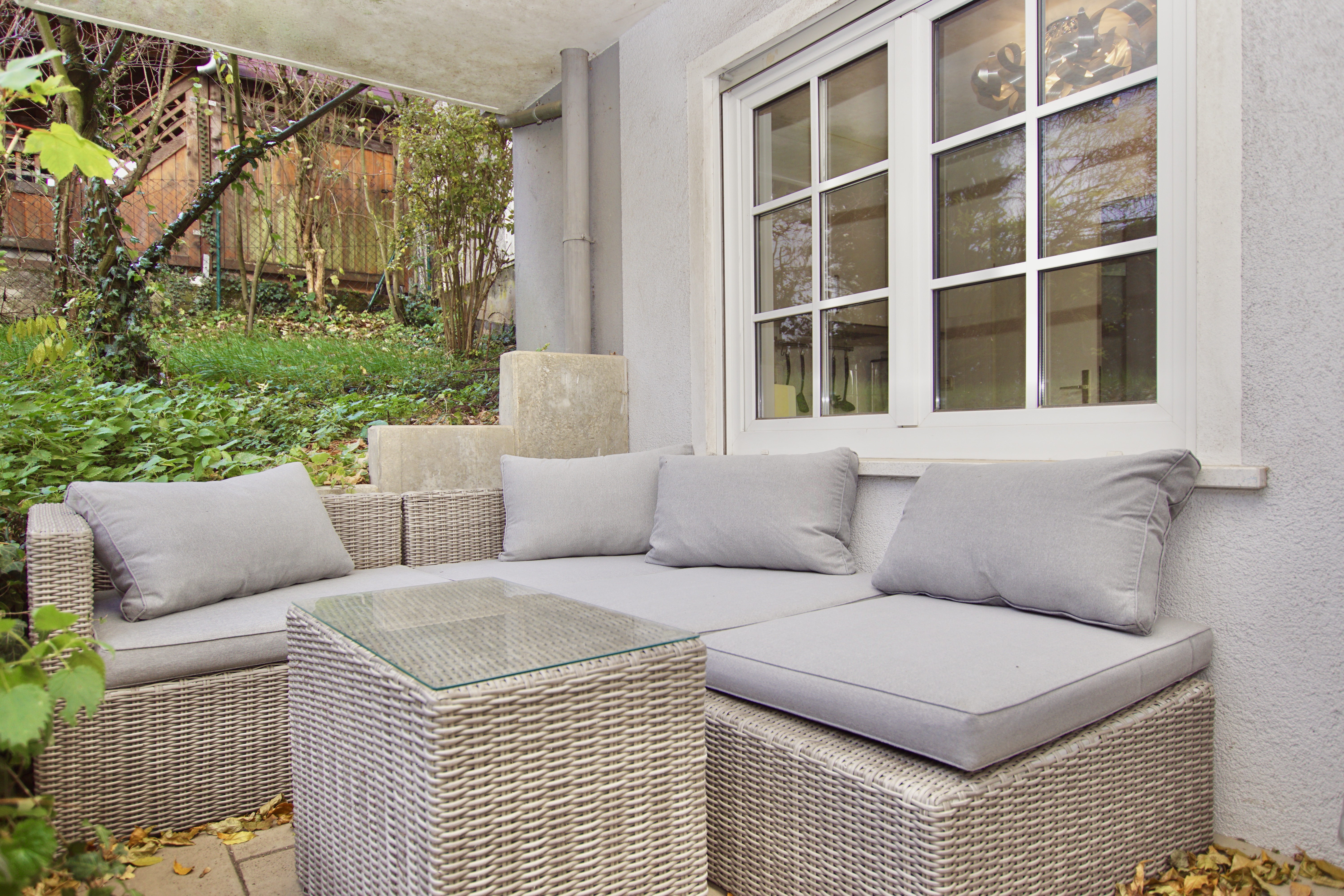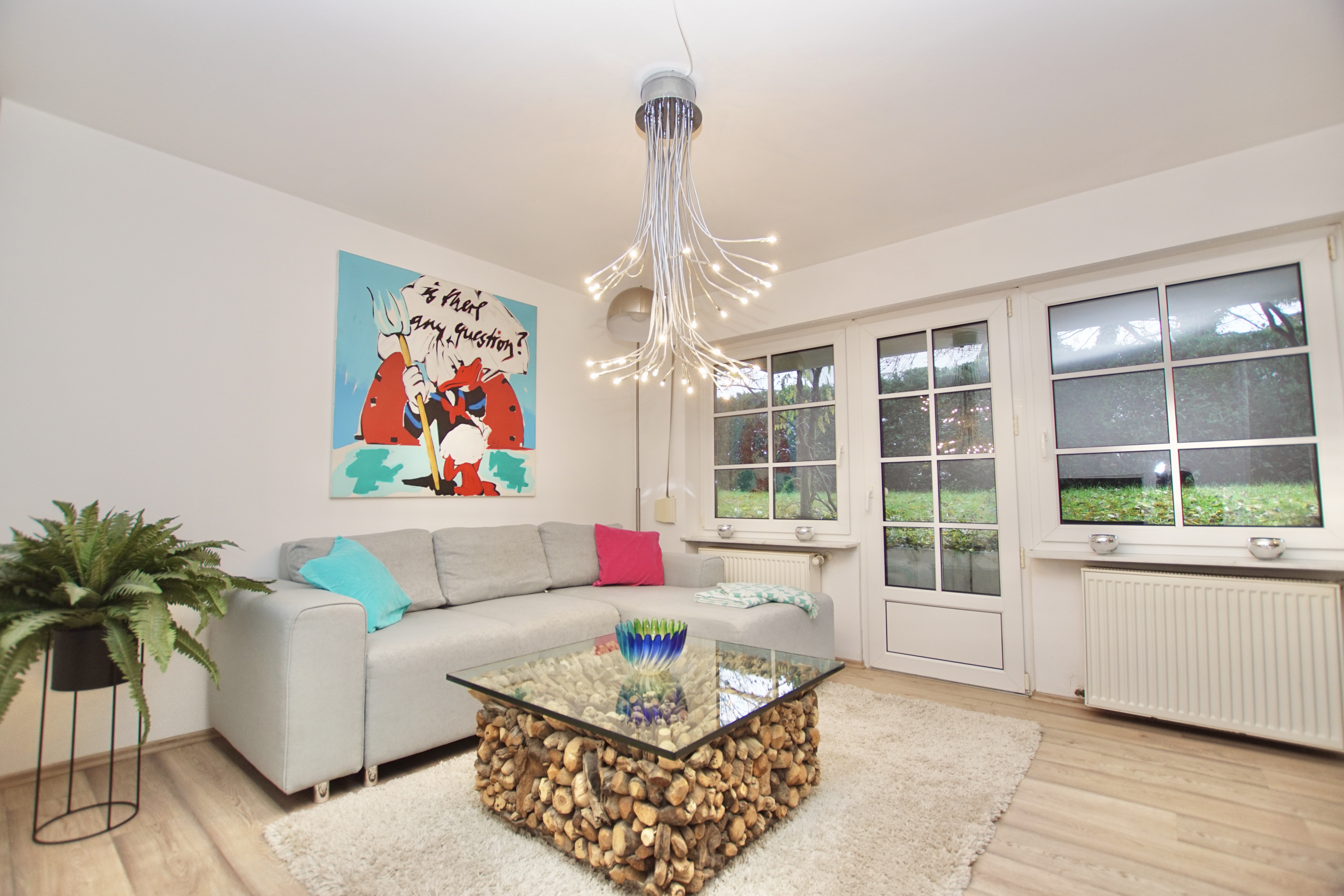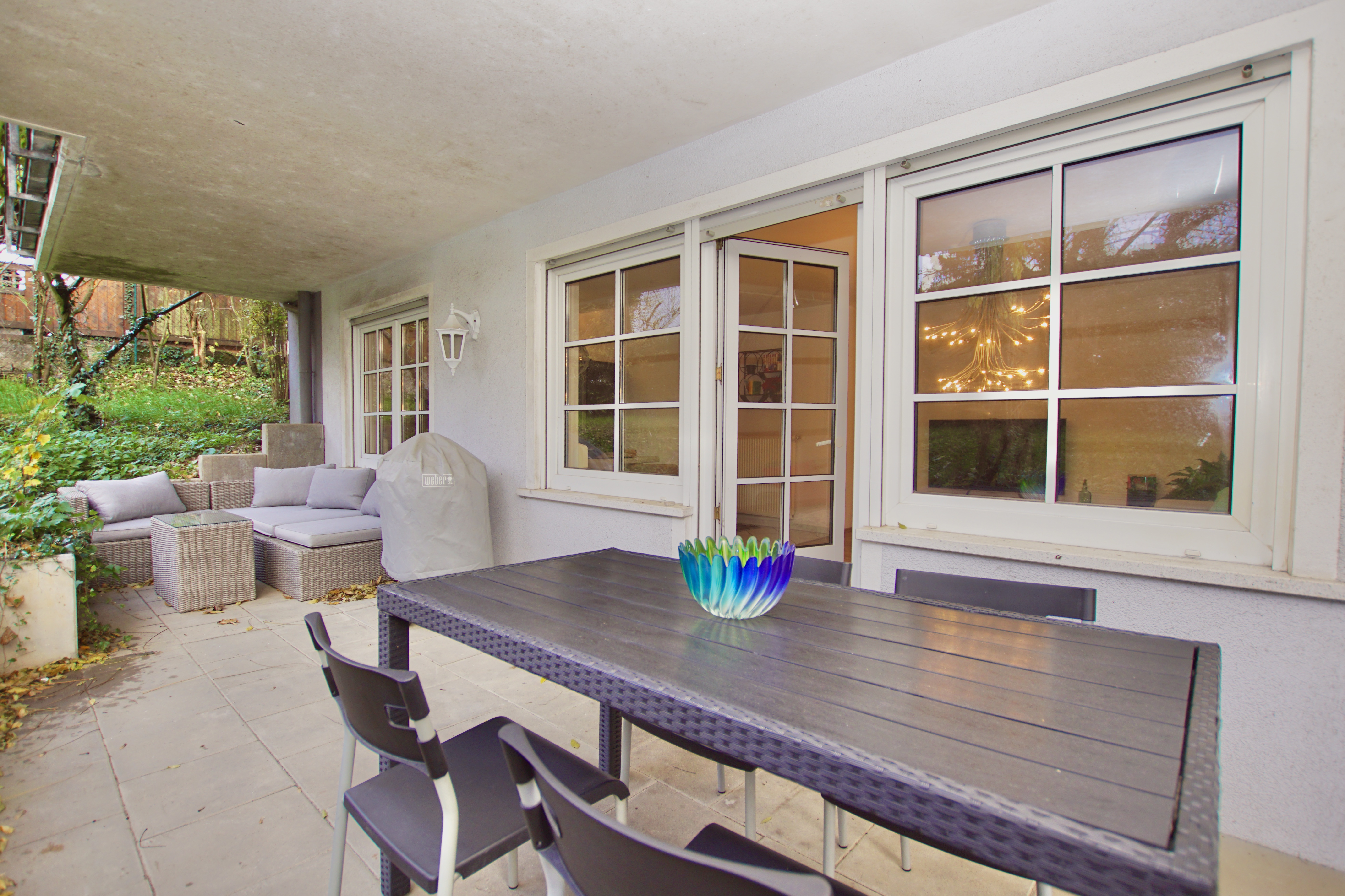 Diese schöne 2-Zimmer Wohnung mit großer Terrasse liegt im Gartengeschoß einer gepflegten Einfamilienvilla in Wiesbaden - Kloppenheim.