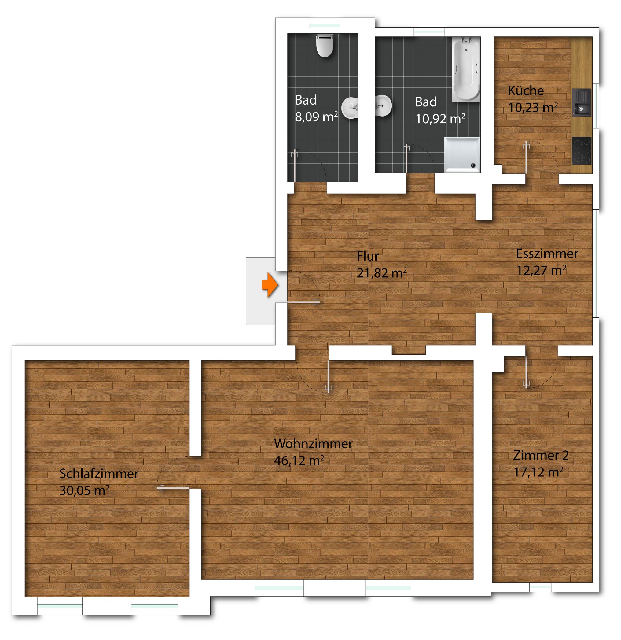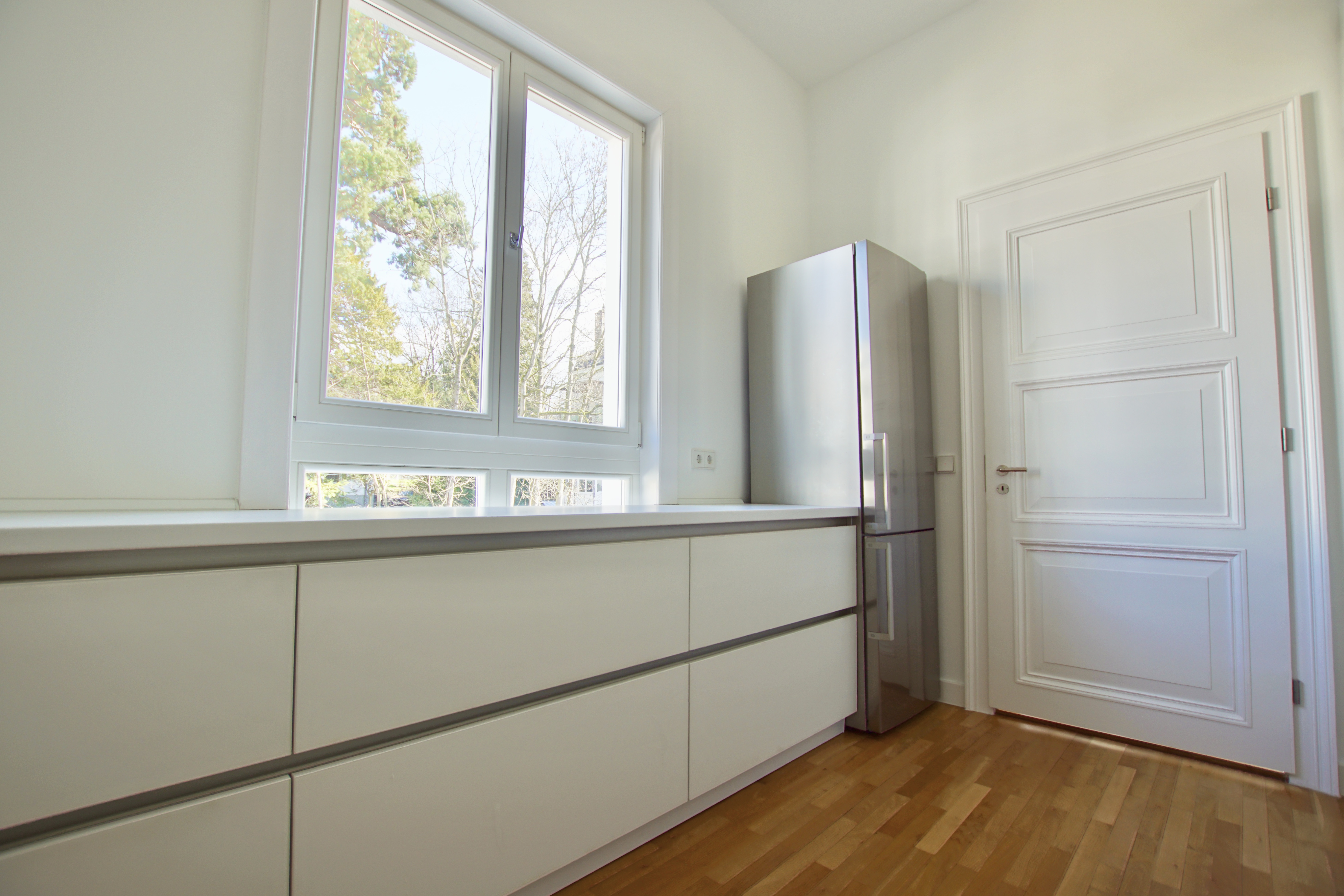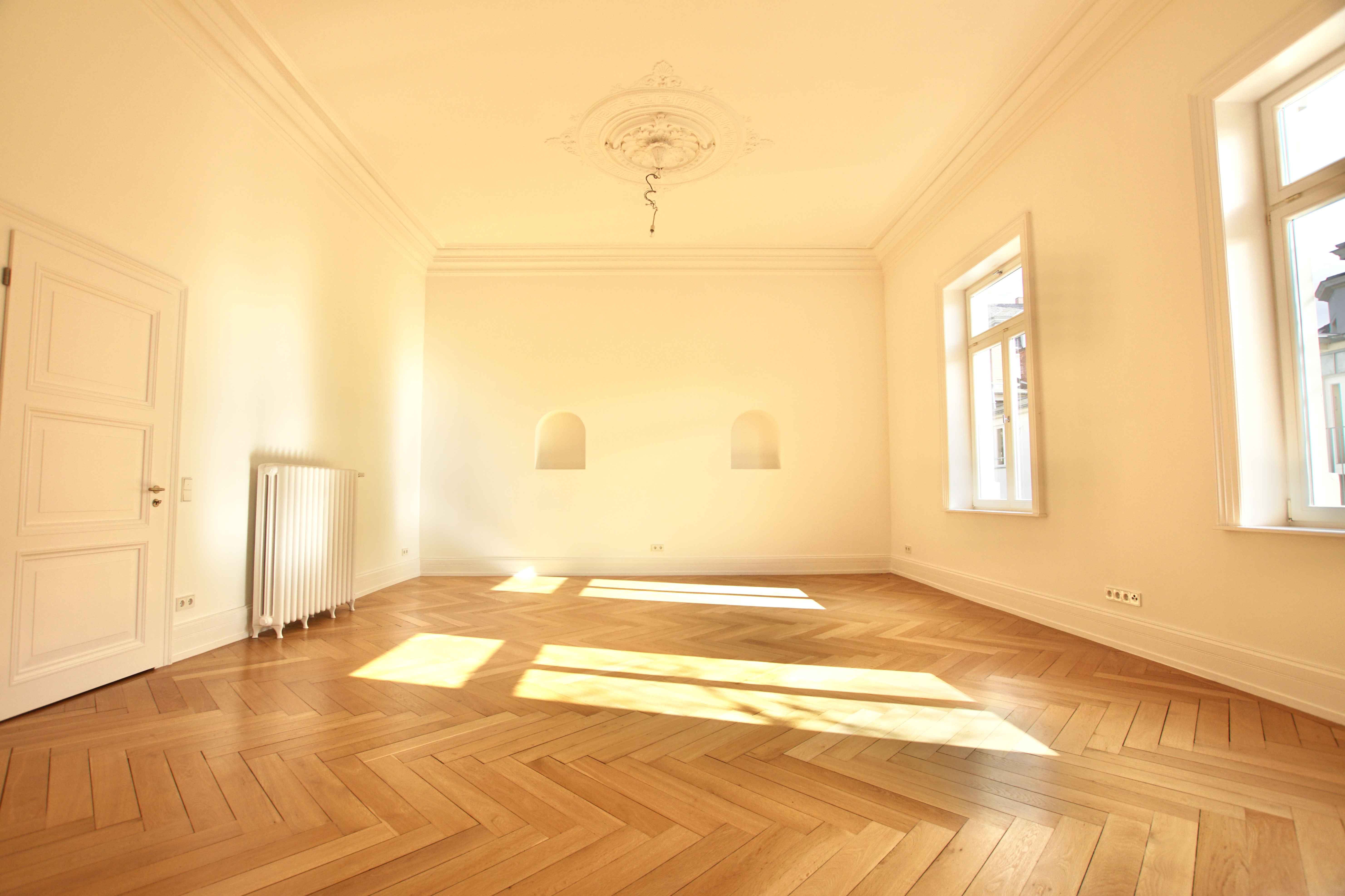 Die helle Wohnung ist qualitativ überdurchschnittlich gut ausgestattet mit wunderschönem Parkettboden, Stuckdecken, hochwertigen Sanitärobjekten und einer modernen Einbauküche.