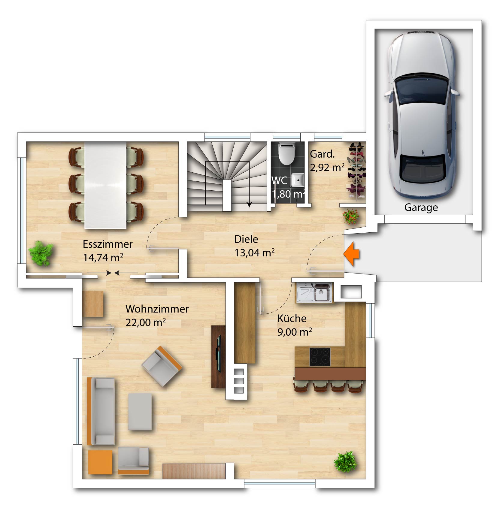 Eine Garage sowie ein Stellplatz davor runden das Wohnangebot ab.
