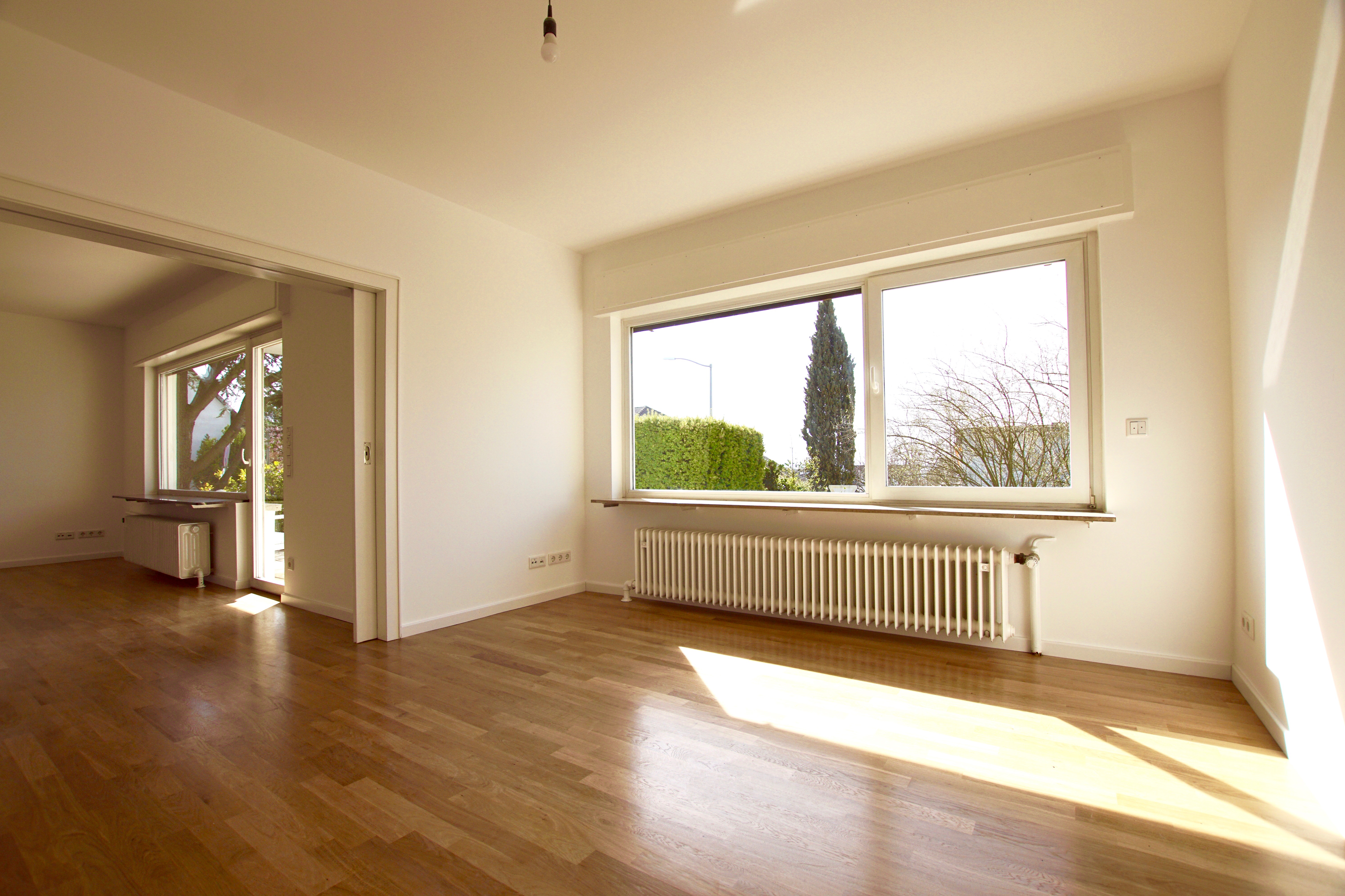 Mit viel Liebe zum Detail wurde die Villa vor wenigen Jahren saniert. Die gesamte Technik mit Heizung und Elektrik wurde erneuert, Eichenparkett im Erdgeschoß und Designerbelag aus Vinyl im ersten Obergeschoß verlegt. Sowohl das Gäste-WC als auch das Badezimmer sind in weiß gehalten und neu, ebenso die helle, offene Einbauküche mit Induktionsherd und großer Staufläche.