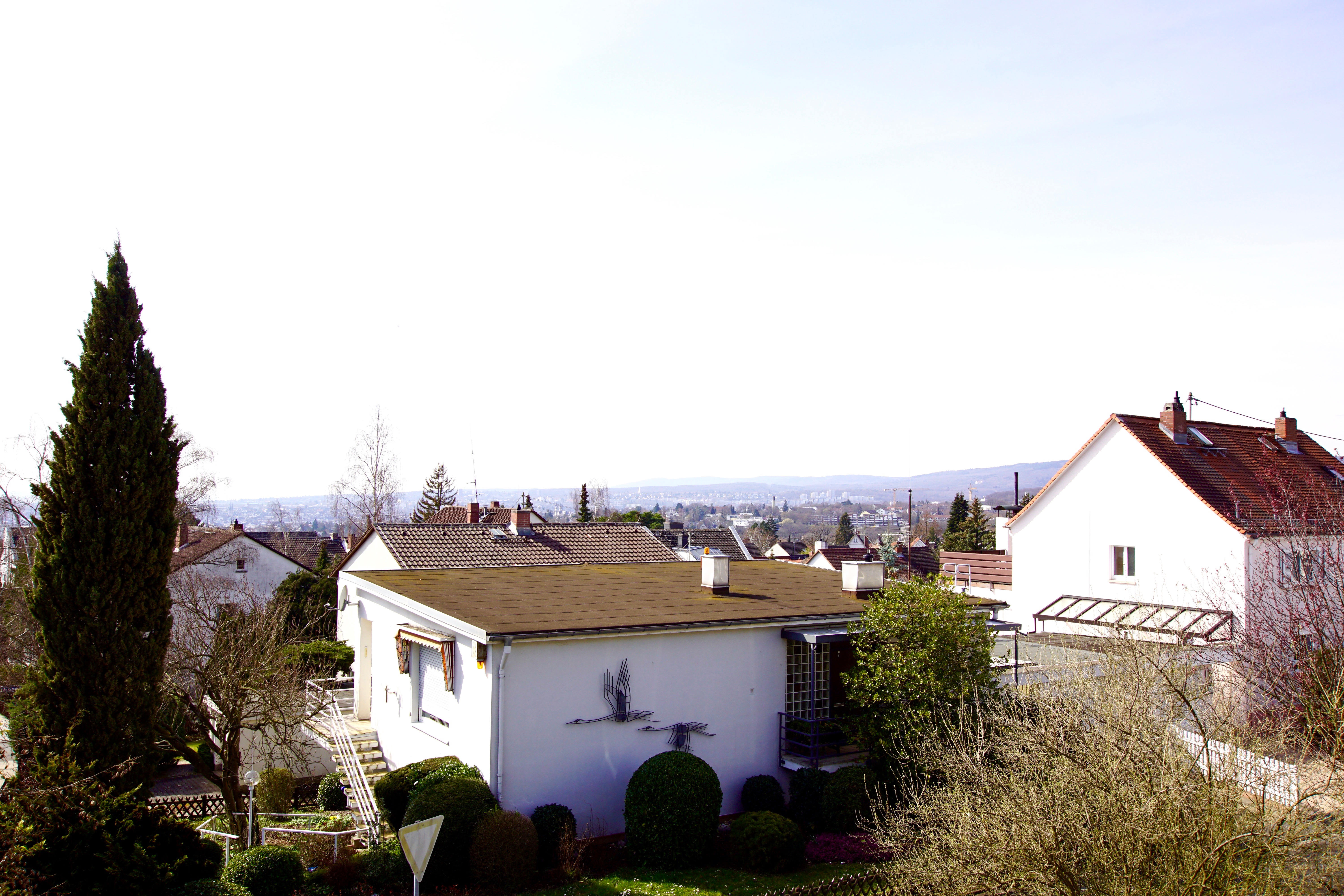 Der nach Süden orientierte Garten mit Terrasse sowie der Balkon im ersten Stock bieten einen schönen Blick auf die Stadt Wiesbaden.