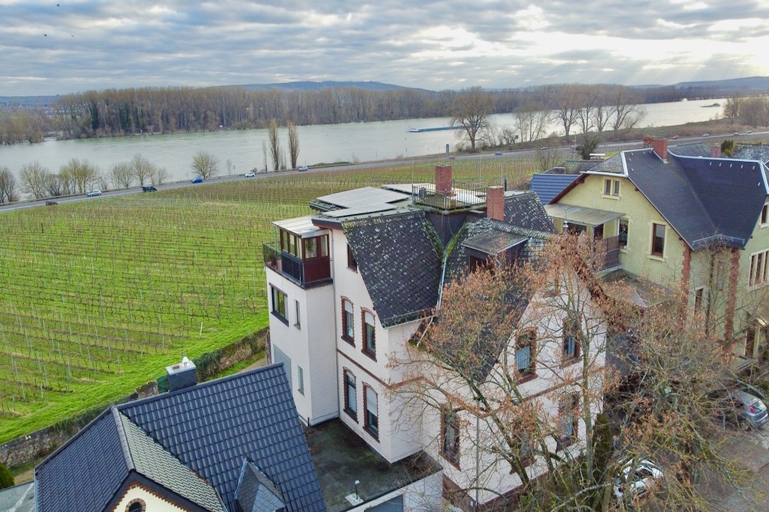 Die Altbauvilla mit traumhaftem Rheinblick befindet sich im wunderschönen Rheingau in Oestrich-Winkel.