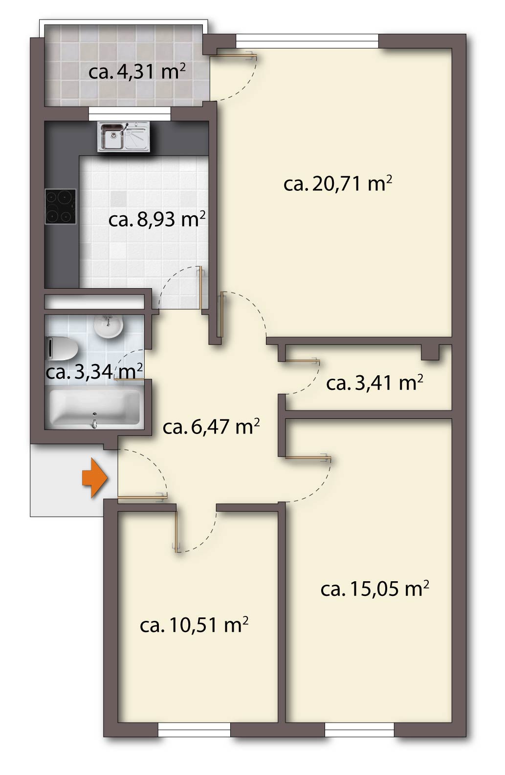 Gut geschnittene 3-Zimmer-Wohnung mit Balkon!
