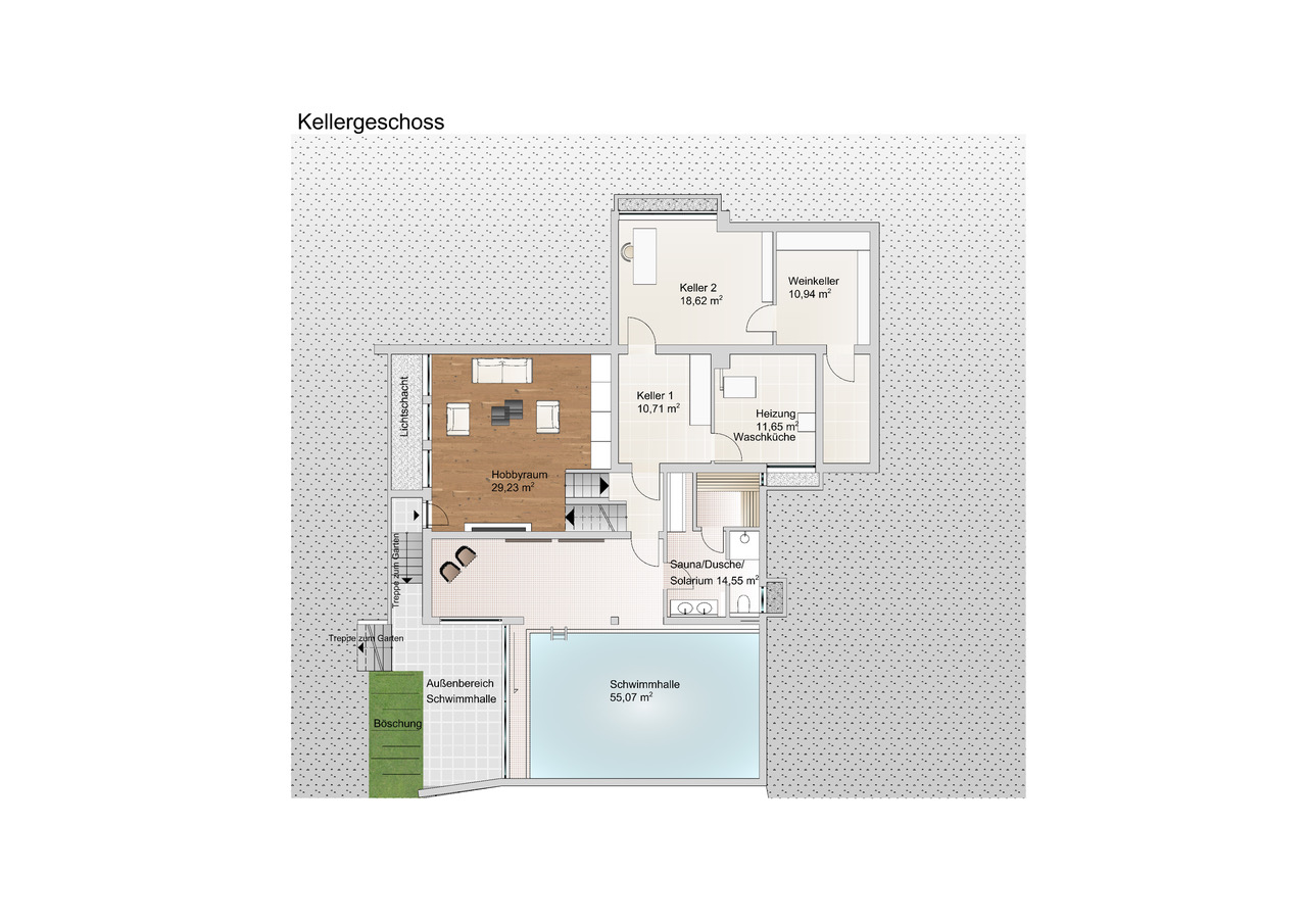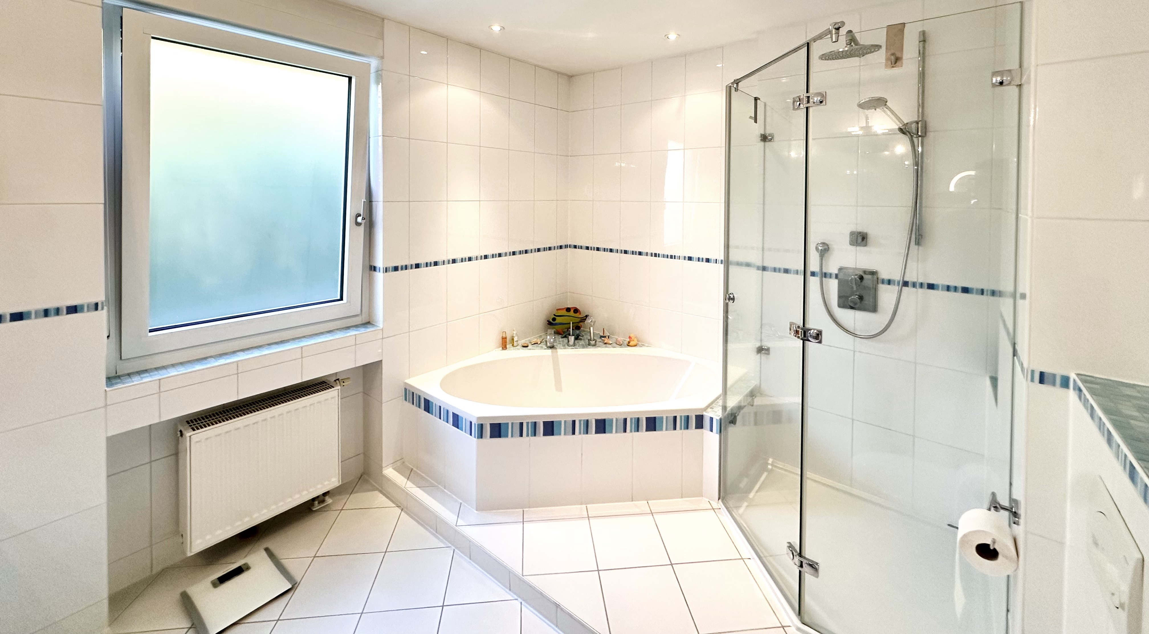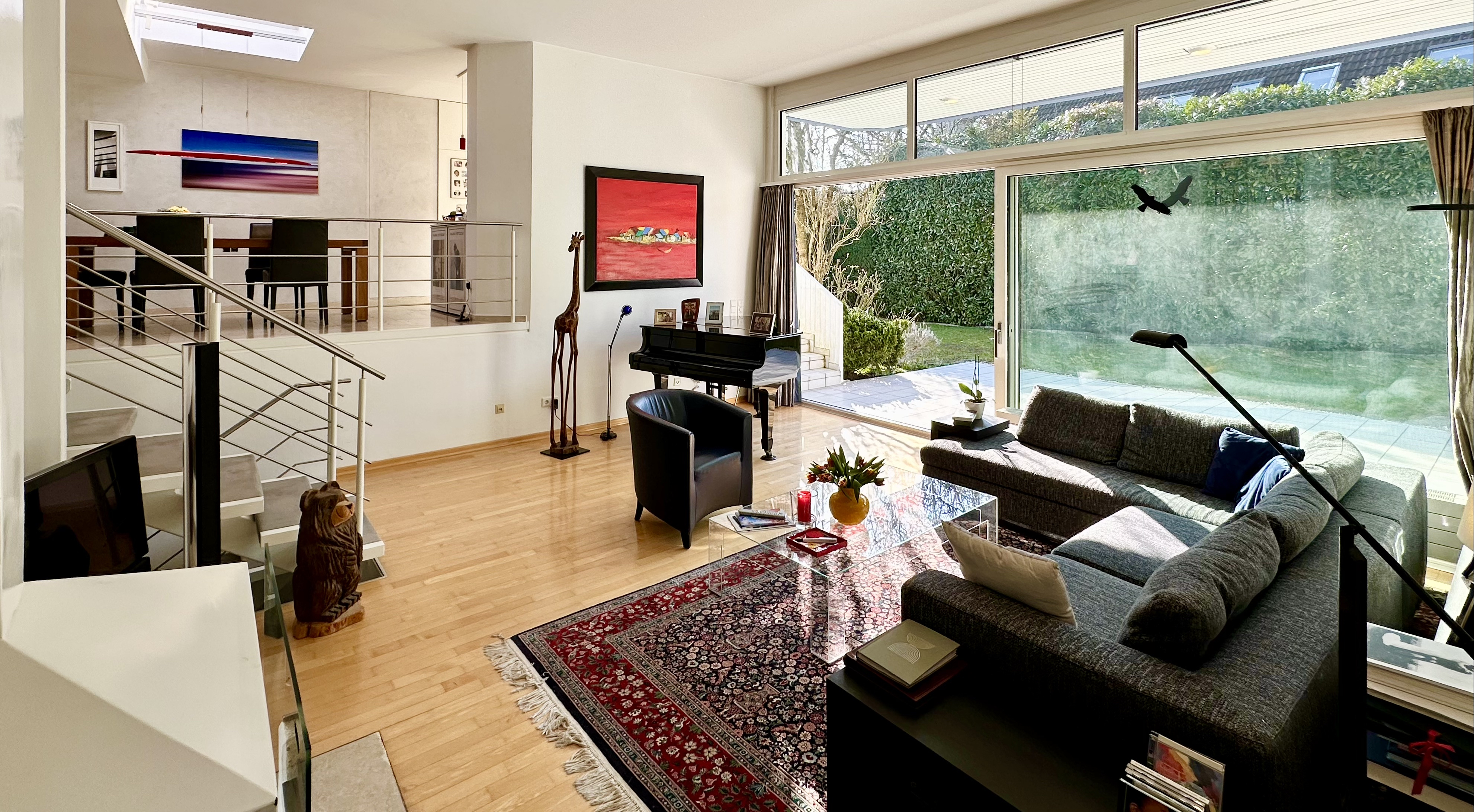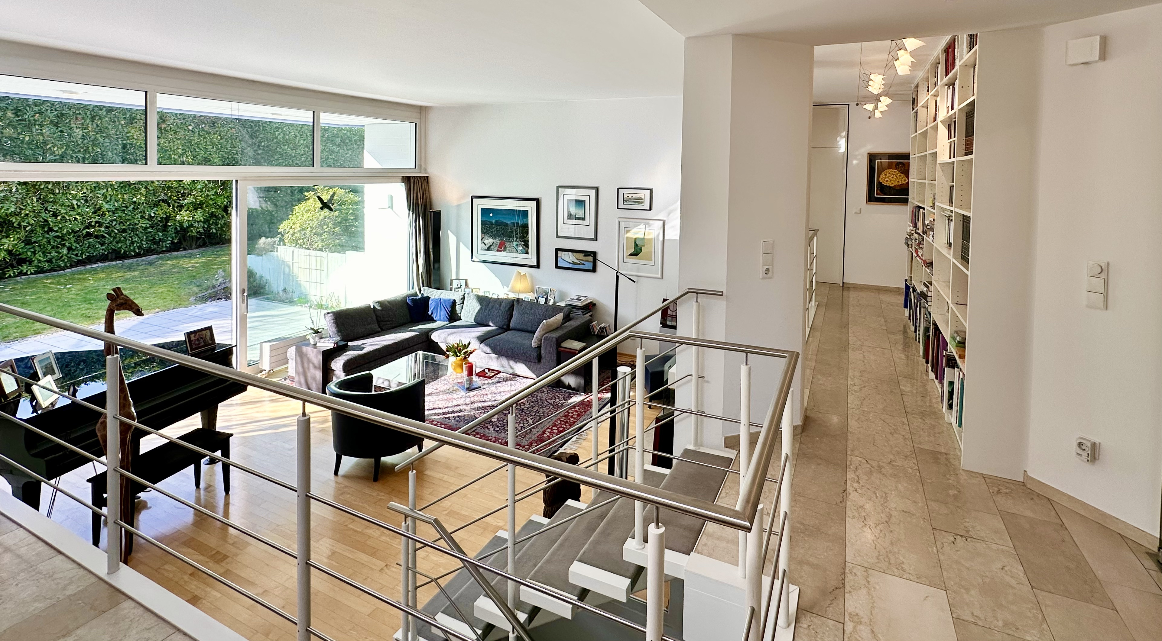 Das ganze Haus ist lichtdurchflutet und so geplant, dass eine Familie mit zwei Kindern wunderbar hier leben kann. Zusätzlich gibt es zahlreiche Nebenräume wie ein Büro oder ein Gästezimmer, welches auch als Heimkino genutzt wird. Ein weiteres Highlight des Hauses ist sicherlich der Wellnessbereich mit großem Hallenbad, Gegenstromanlage, einer Sauna, einem Solarium und einem sehr schönen Badezimmer. Hier machen Sie Urlaub im eigenen Haus. Der Gartenbereich ist wunderbar eingewachsen und bietet maximale Privatsphäre. Der Rasenroboter nimmt Ihnen viel Arbeit ab.