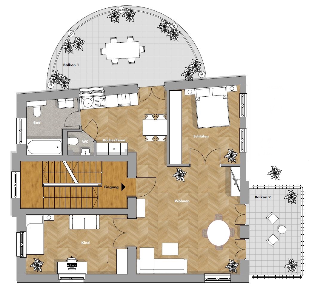 Besonderes Highlight sind die beiden wunderschönen Balkone. Eine Waschküche sowie ein Kellerraum ergänzen das Angebot.