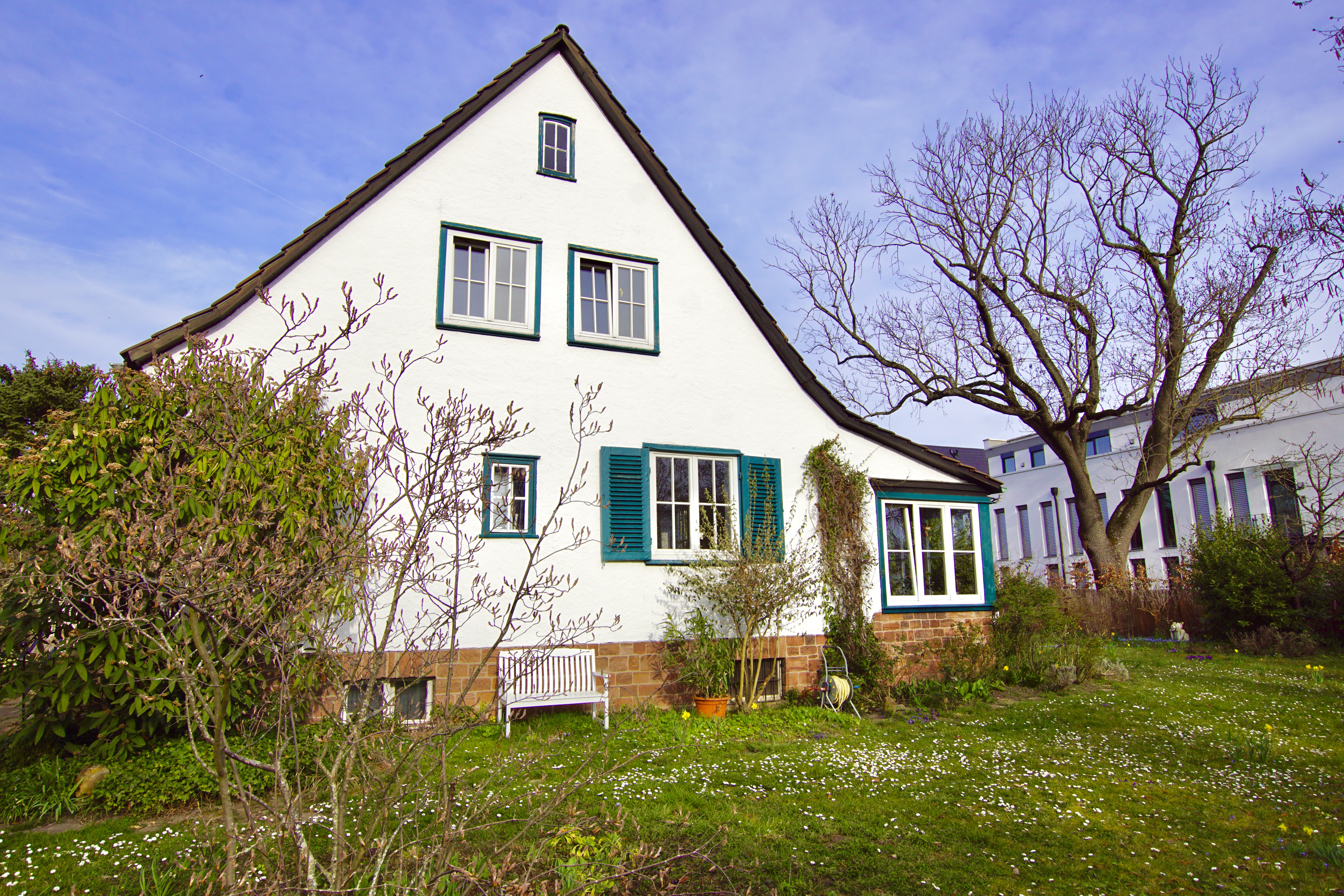 Verwunschenes Einfamilienhaus in bester Lage direkt am Rhein! Das 1935 erbaute Einfamilienhaus bietet idealen Platz für eine Familie oder ein Paar mit großem Platzbedarf. Die Aufteilung ist klassisch mit einem großen, offenen Wohn- und Essbereich im EG und direktem Zugang in den alt eingewachsenen Süd-Westgarten.