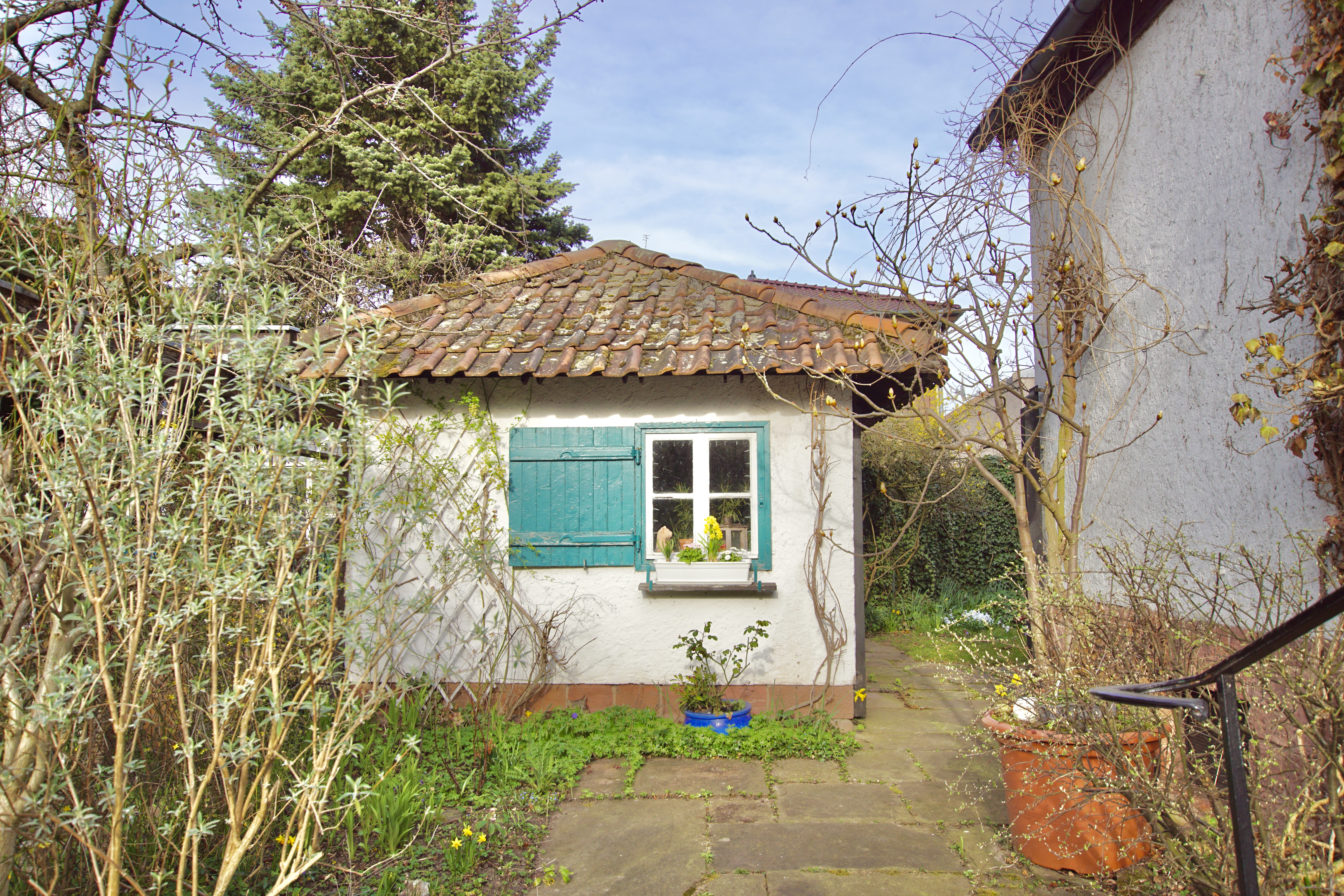 Besonders Highlight ist der wunderschöne Süd-West-Garten mit altem Baumbestand, Terrasse und verschiedenen Sitzmöglichkeiten. Das ebenfalls in massiver Bauweise errichtete Gartenhaus wurde z.T. auch als Garage genutzt.